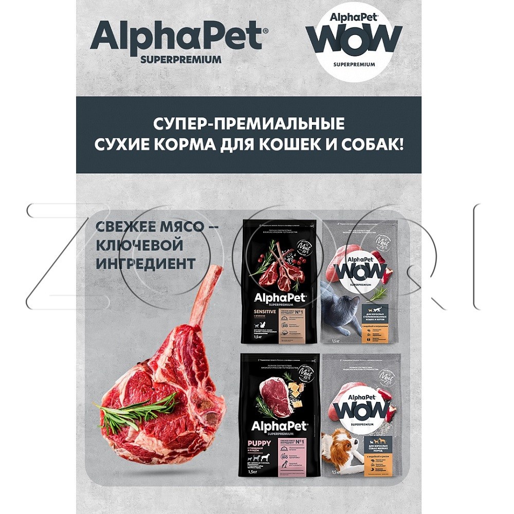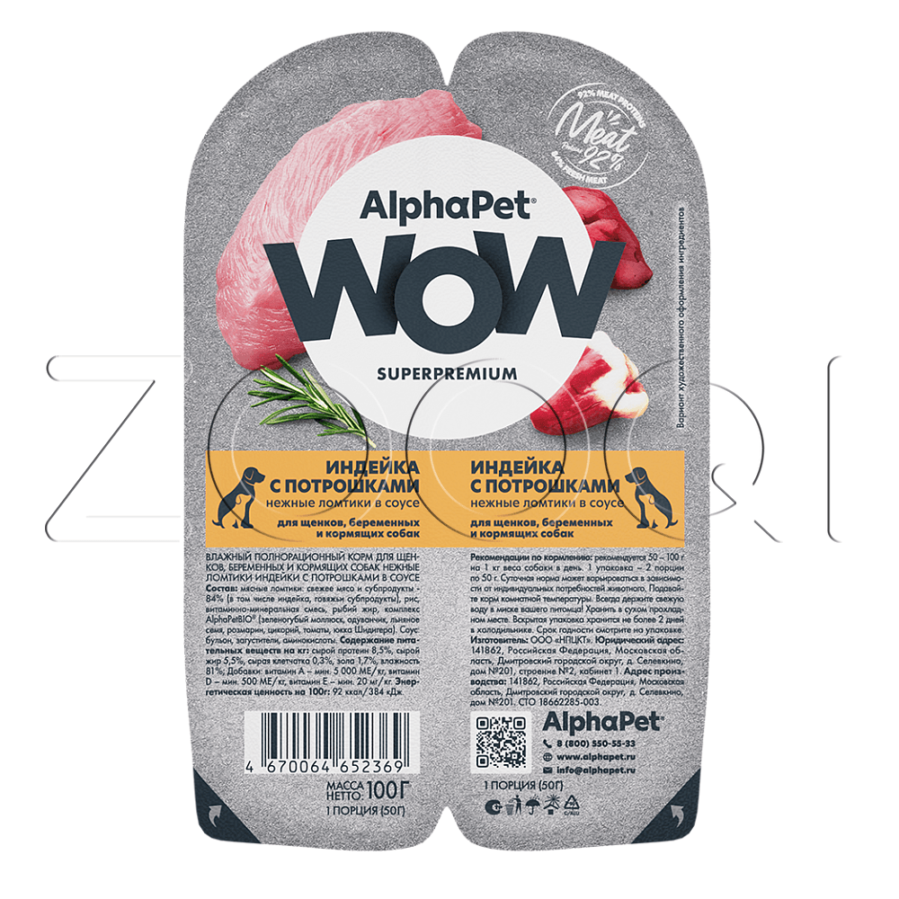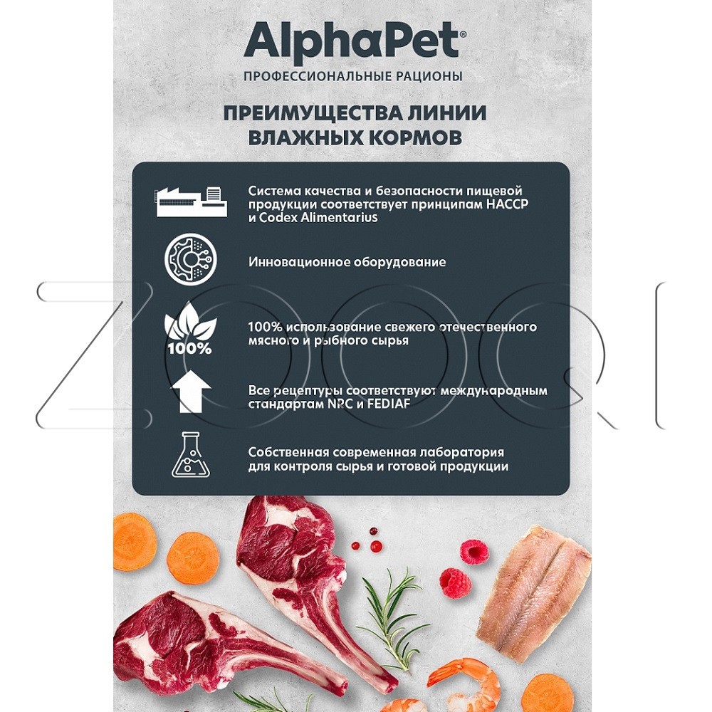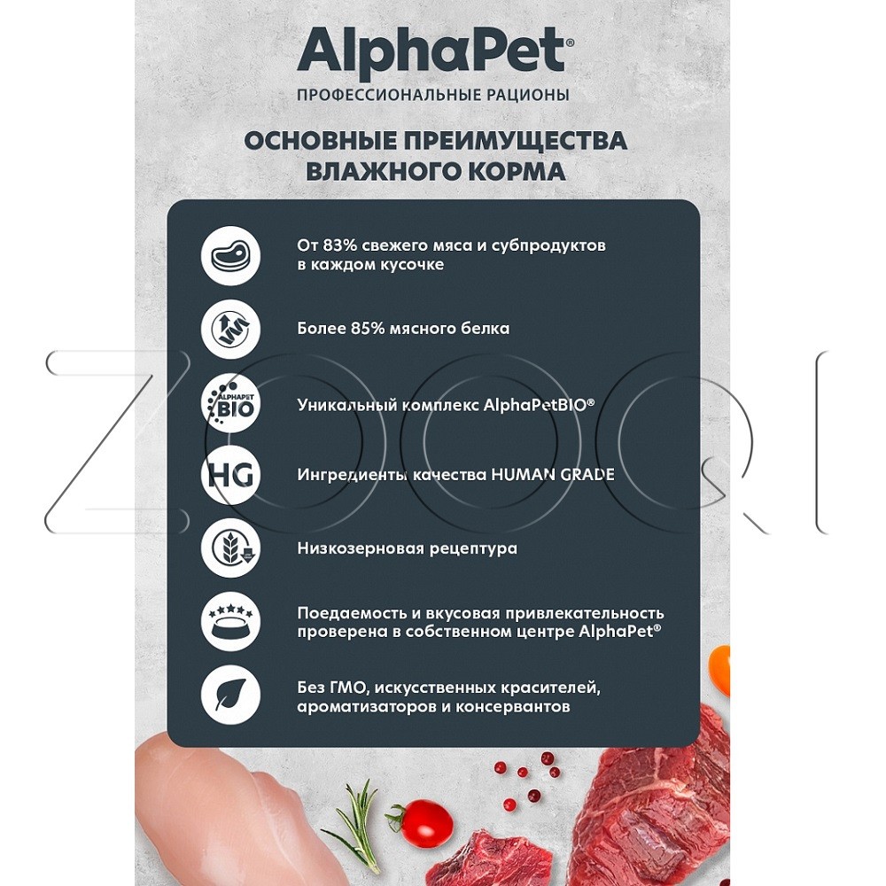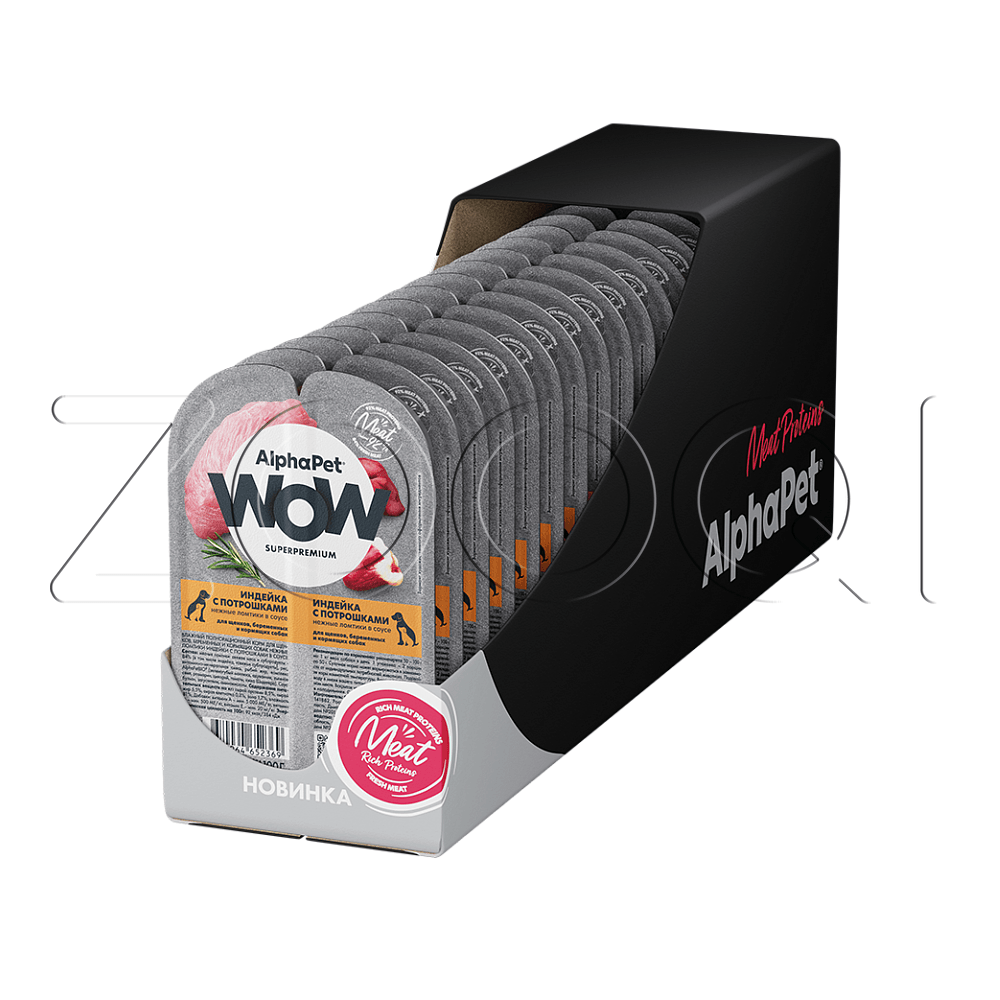 AlphaPet WOW Superpremium – влажный полнорационный корм для щенков, беременных и кормящих собак нежные ломтики индейки с потрошками в соусе.