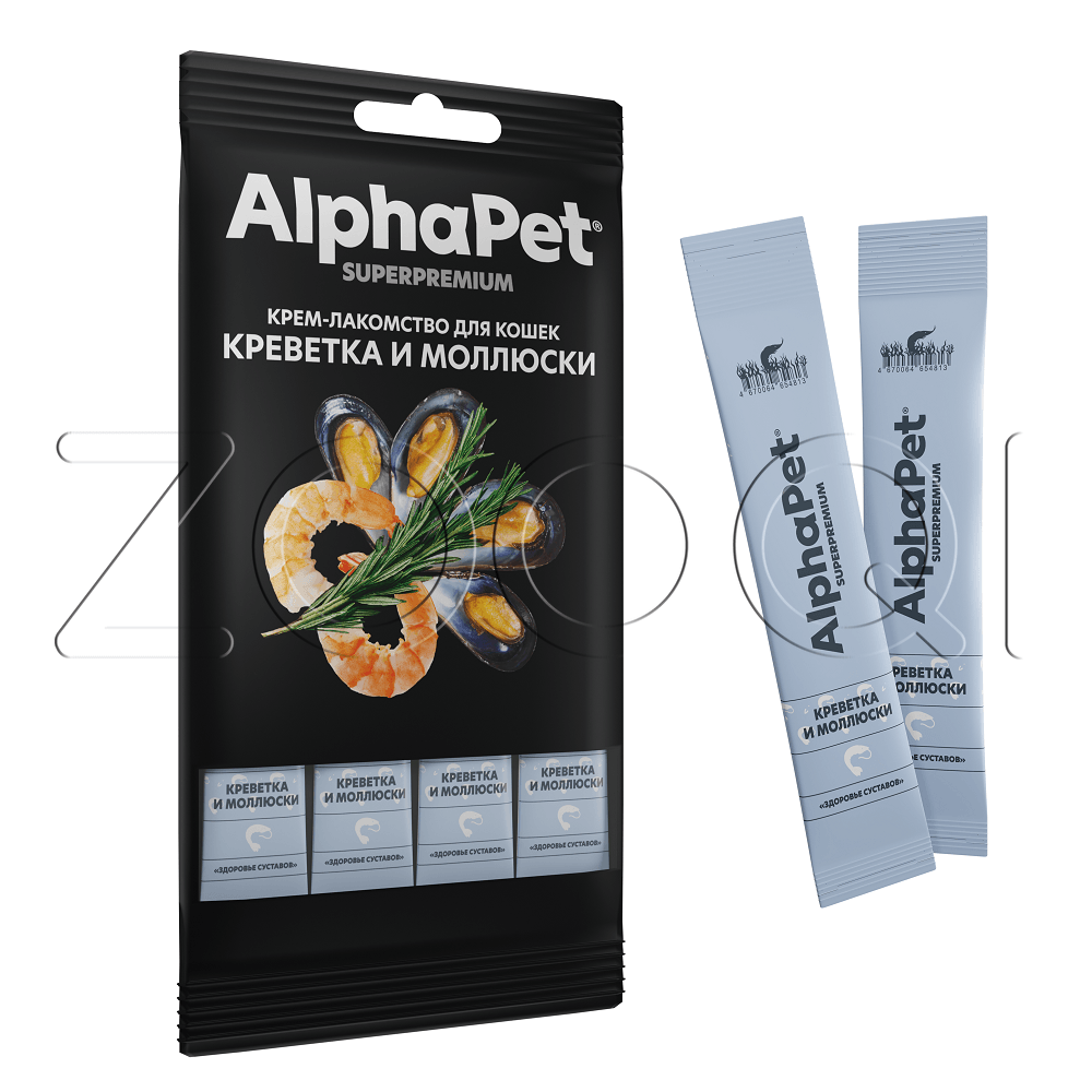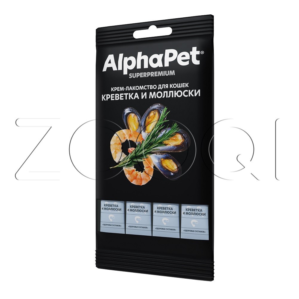 AlphaPet Superpremium – крем-лакомство с креветкой и моллюсками для профилактики заболеваний суставов у кошек.