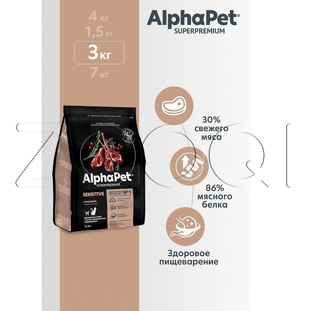 AlphaPet Superpremium Sensitive — полнорационный сбалансированный корм для взрослых кошек с чувствительным пищеварением с ягненком.