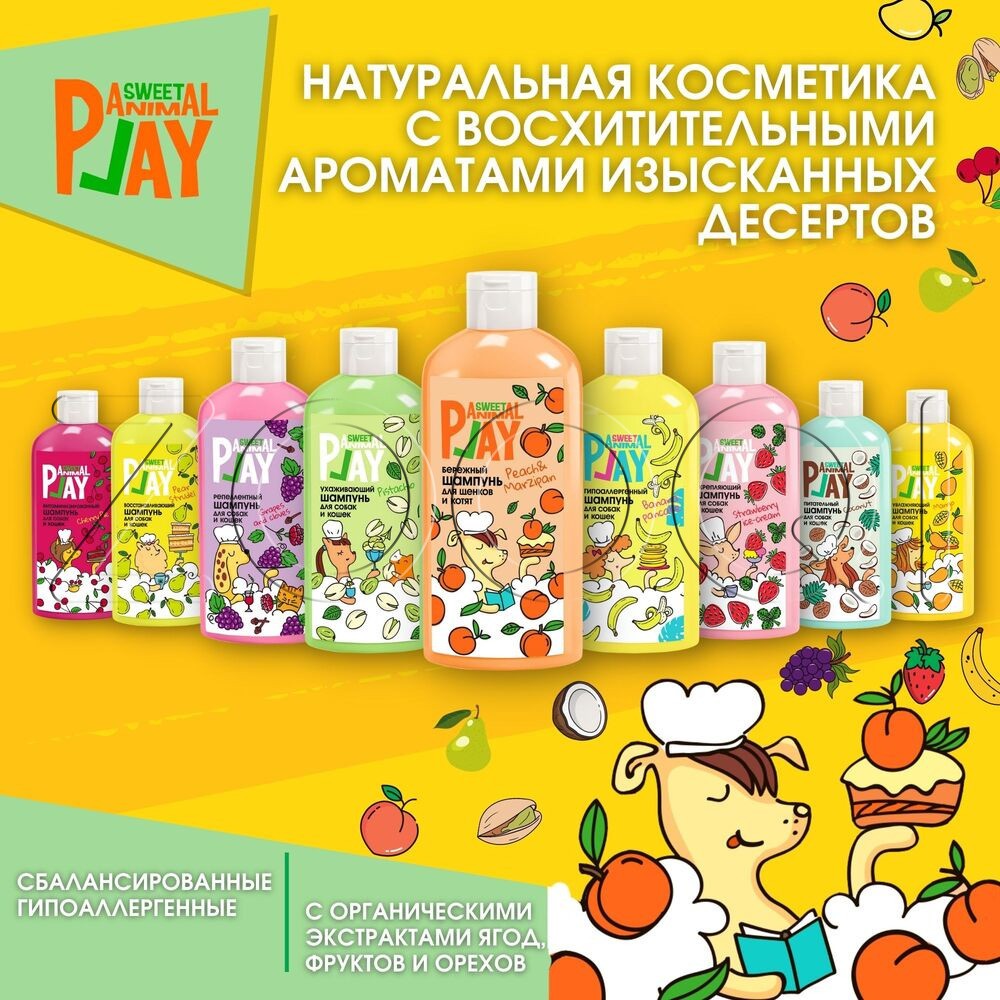 У шампуней для животных Animal Play есть следующие преимущества: гипоаллергенные формулы, благодаря которым шампунь для собак и кошек подходит всем питомцам. Экстракты ягод, фруктов и орехов питают и увлажняют кожу и шерсть животного. Шампуни подходят для ежедневного применения и являются незаменимым товаром для животных.