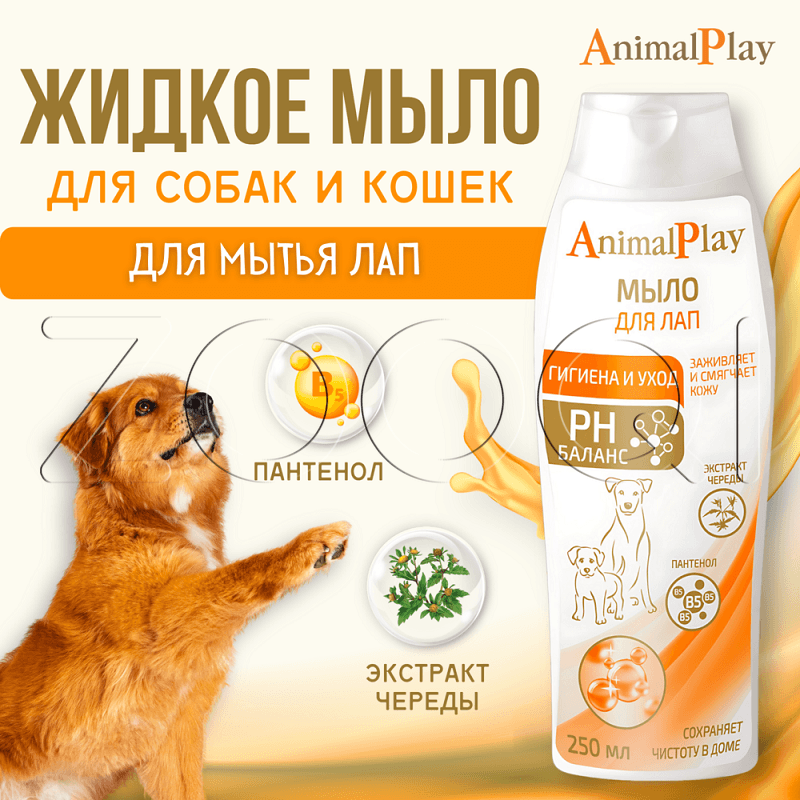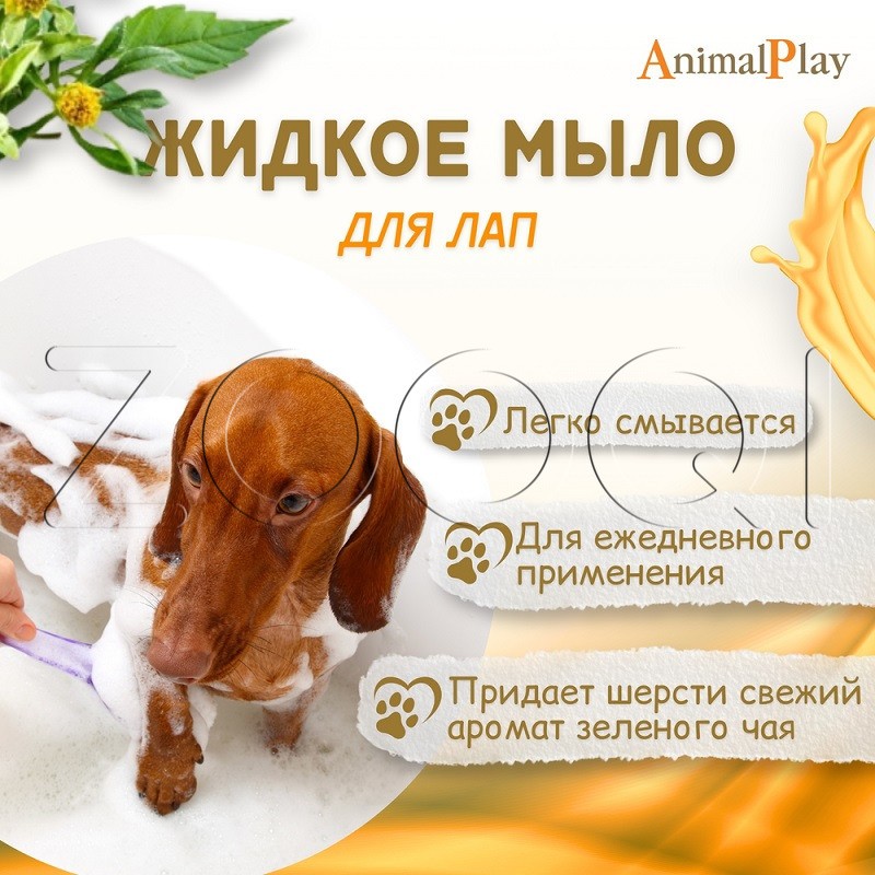 Animal Play Жидкое мыло с D-пантенолом и экстрактом череды для ежедневного мытья лап и живота питомца после прогулки.