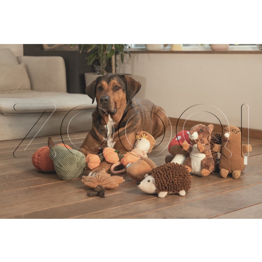 Игрушка изготовлена из мягкого плюша и хлопковой веревки. Благодаря веревке игрушка идеально подходит для интерактивных игр. Кроме того, лист наполнен потрескивающей фольгой, которая привлечет еще больше внимания питомца, а осенний дизайн листа создаст уютную атмосферу.