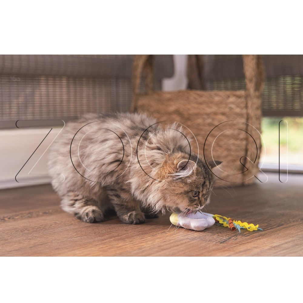 Игрушка «Прятки Ирис» имеет специальный отсек, куда можно прятать лакомства, что стимулирует котёнка к поиску и открытиям. Разноцветные верёвочки на игрушке делают её ещё привлекательнее и добавляют удовольствия от игры.
