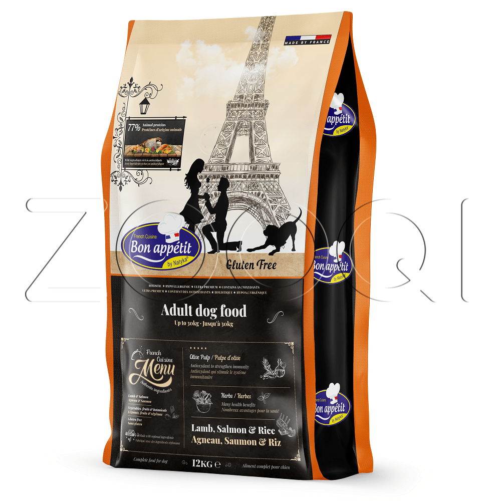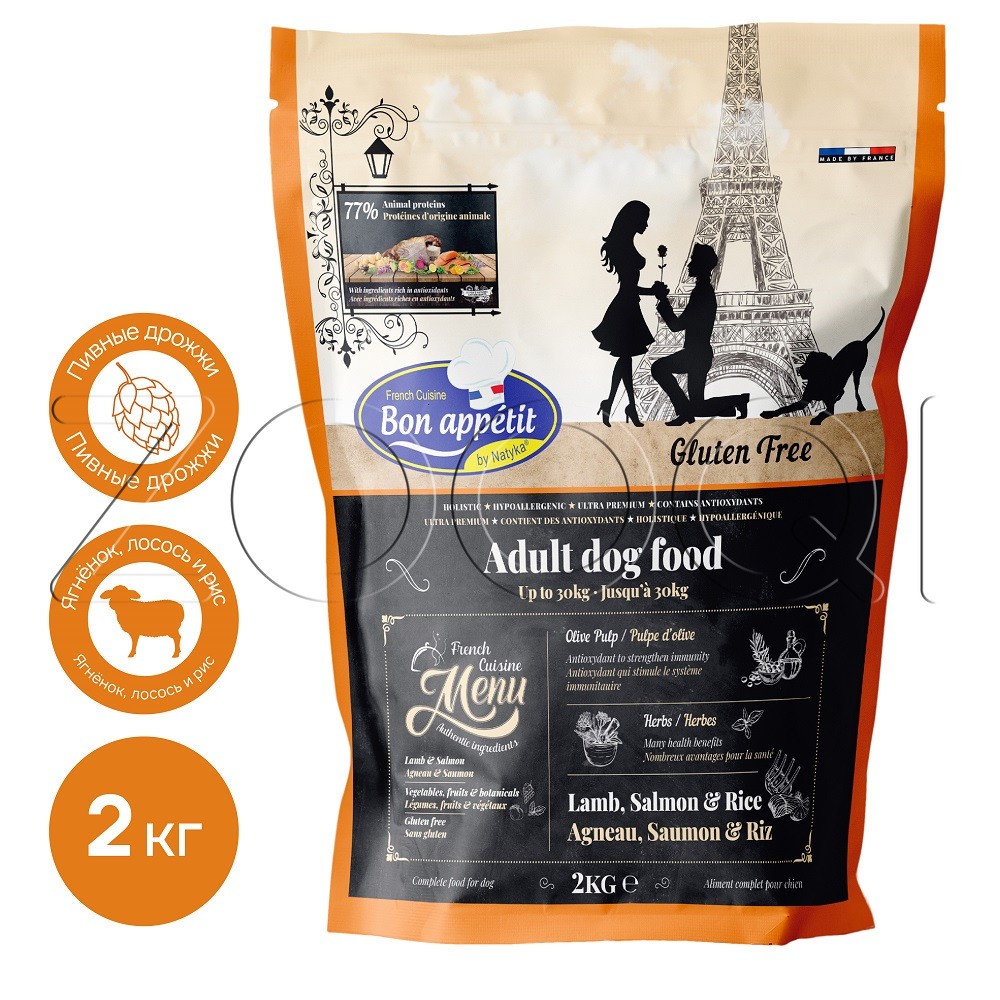 Bon Appetit Adult Dog Lamb & Salmon & Rice — гипоаллергенный корм без глютена с ягненком, лососем и рисом для взрослых собак всех пород с чувствительным пищеварением.