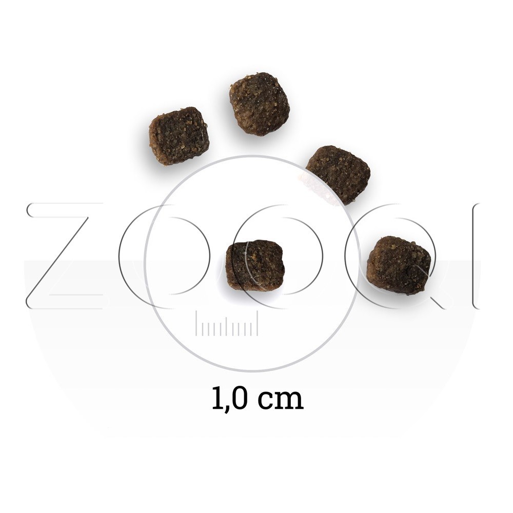Куриное мясо 42 %, мясо лосося 21 % (природный источник EPA и DHA), фермерский картофель, рис, фрукты, овощи и травы (оливковая пульпа (источник кофермента Q10), зеленый горошек (натуральный источник железа), экстракт виноградных косточек (натуральные антиоксиданты), лимонная пульпа (источник витаминов А и B), апельсиновая пульпа (витамин С), грейпфрутовая пульпа и экстракт семян (источник биофлавоноидов), тимьян, орегано, майоран, петрушка, шалфей), куриный жир (с токоферолом), гидролизованный куриный белок, свекольная пульпа (источник бетаина), хлорид натрия, дрожжи, рыбий жир из анчоусов и сардин (богат жирными кислотами омега-3 и омега-6), дрожжевые экстракты (натуральный комплекс витамина В), saccharomyces cerevisiae (маннан-олигосахариды), экстракт корня цикория (фруктоолигосахариды).