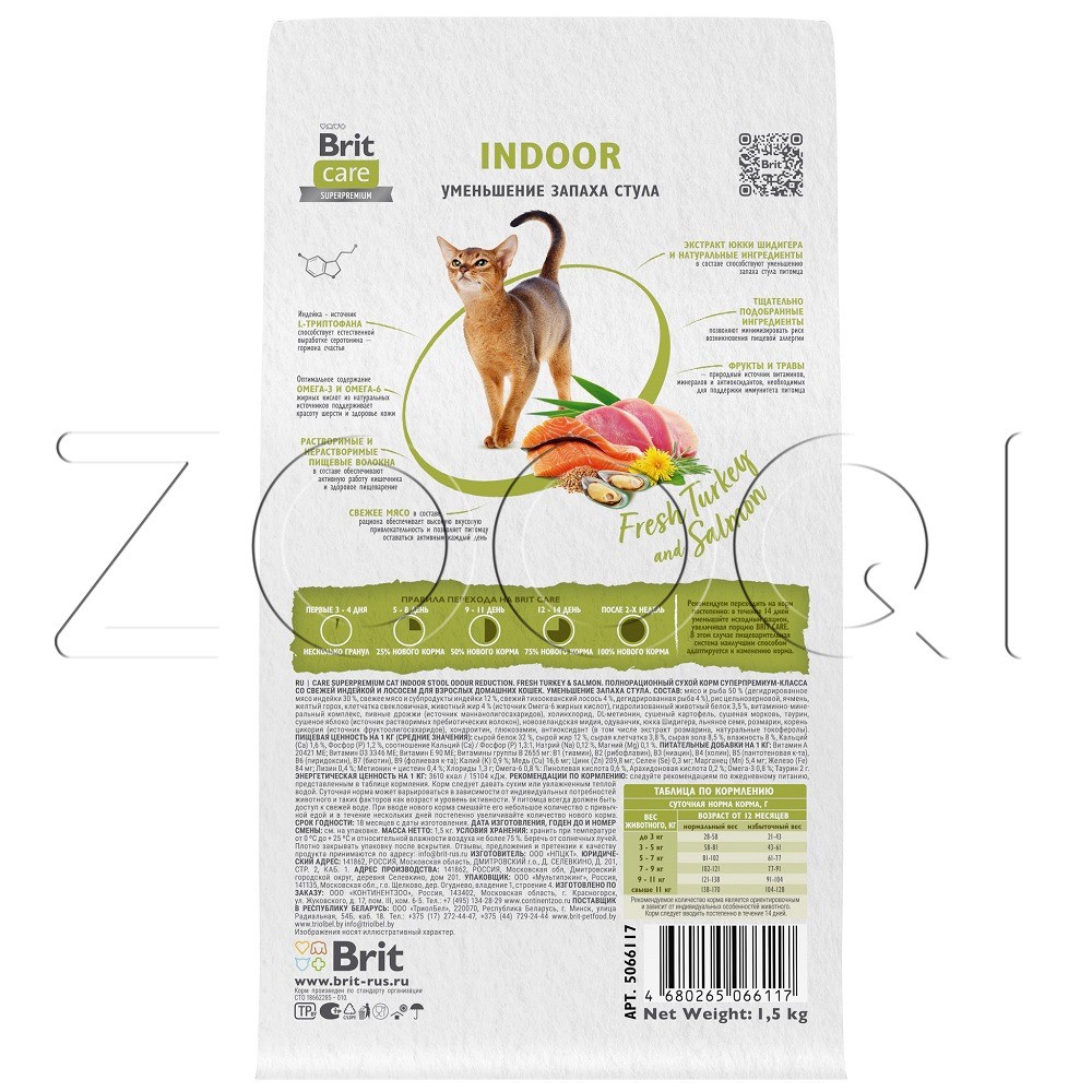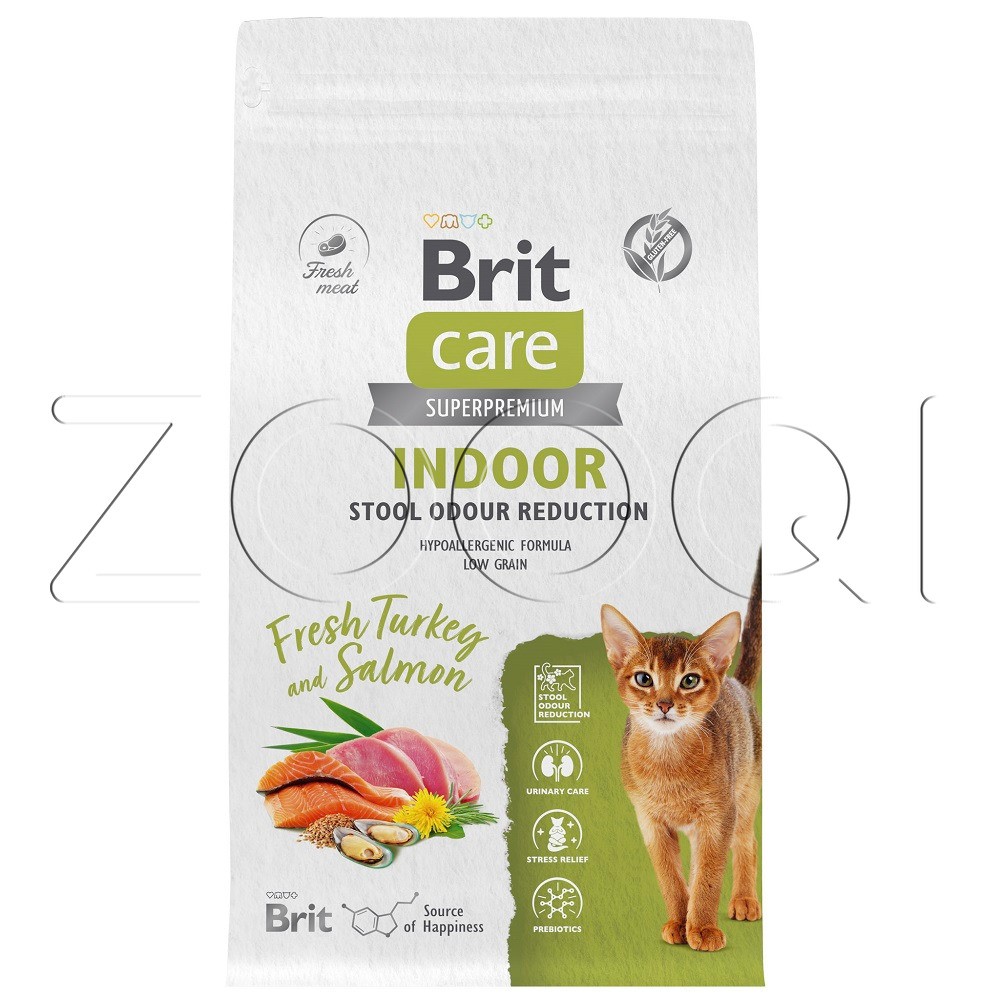 Brit Care Cat Indoor Stool Odour Reduction — полнорационный сухой корм суперпремиум-класса с индейкой и лососем для взрослых домашних кошек. Уменьшение запаха стула. У ряда кошек запах из лотка сильнее, чем у других. Из-за этого сам питомец может отказываться ходить в положенное место.