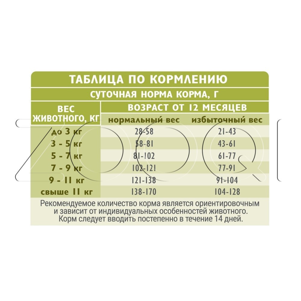 Мясо и рыба 50 % (дегидрированное мясо индейки 30 % свежее мясо и субпродукты индейки 12 %, свежий тихоокеанский лосось 4 %, дегидрированная рыба 4 %), рис цельнозерновой, ячмень, желтый горох, клетчатка свекловичная, животный жир 4% (источник Омега-6 жирных кислот), гидролизованный животный белок 3,5 %, витаминно-минеральный комплекс, пивные дрожжи (источник маннанолигосахаридов), холинхлорид, DL-метионин, сушеный картофель, сушеная морковь, таурин, сушеное яблоко (источник растворимых пребиотических волокон), новозеландская мидия, одуванчик, юкка Шидигера, льняное семя, розмарин, корень цикория (источник фруктоолигосахаридов), хондроитин, глюкозамин, антиоксидант (в том числе экстракт розмарин, натуральные токоферолы).