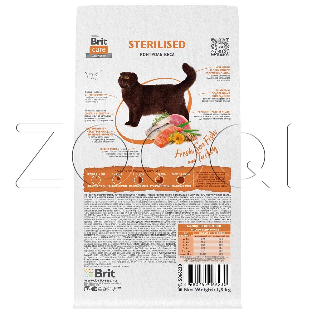 Brit Care Cat Sterilised Weight Control — полнорационный сухой корм суперпремиум-класса с морской рыбой и индейкой для стерилизованных кошек. Контроль веса. Стерилизованные кошки могут набирать вес из-за снижения активности. Это приводит к болезням сердца, печени и почек.