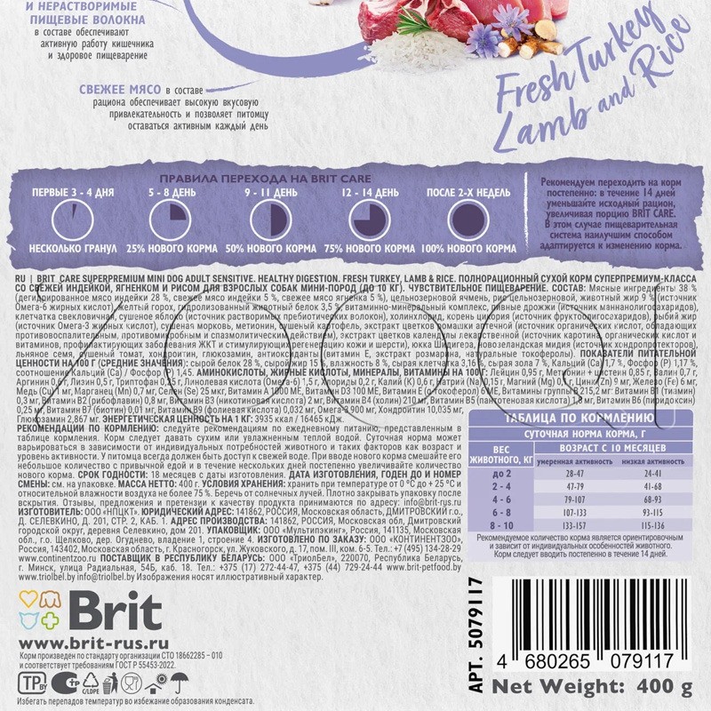 Brit Care Mini Superpremium Dog Adult Sensitive Healthy Growth — это полнорационный сухой корм суперпремиум-класса, специально разработанный для взрослых собак мини-пород весом до 10 кг с чувствительным пищеварением. Благодаря уникальному составу с индейкой, ягненком и рисом, этот корм легко усваивается и поддерживает здоровье пищеварительной системы. Он идеально подходит для собак с пищевыми аллергиями или непереносимостью определенных ингредиентов, обеспечивая им полноценное и сбалансированное питание.
