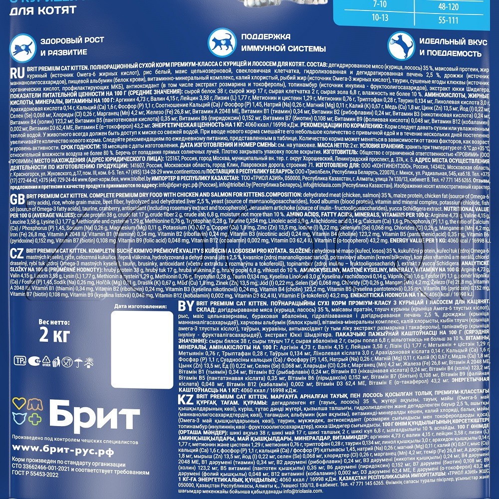 Брит Премиум Cat Kitten – полнорационный сухой корм премиум класса с курицей для котят всех пород.