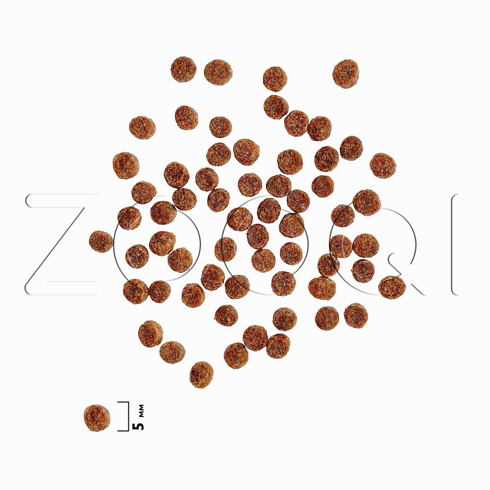 Дегидрированное мясо 37 % (курица, лосось), глютен кукурузный, жир куриный, рис, кукуруза, свекольная пульпа, гидролизованная и дегидратированная печень 2,5 %, дрожжи (источник маннанолигосахаридов), витаминно-минеральный комплекс, таурин, топинамбур (источник фруктоолигосахаридов), клюква, антиокислитель, экстракт юкки Шидигера, экстракт розмарина.