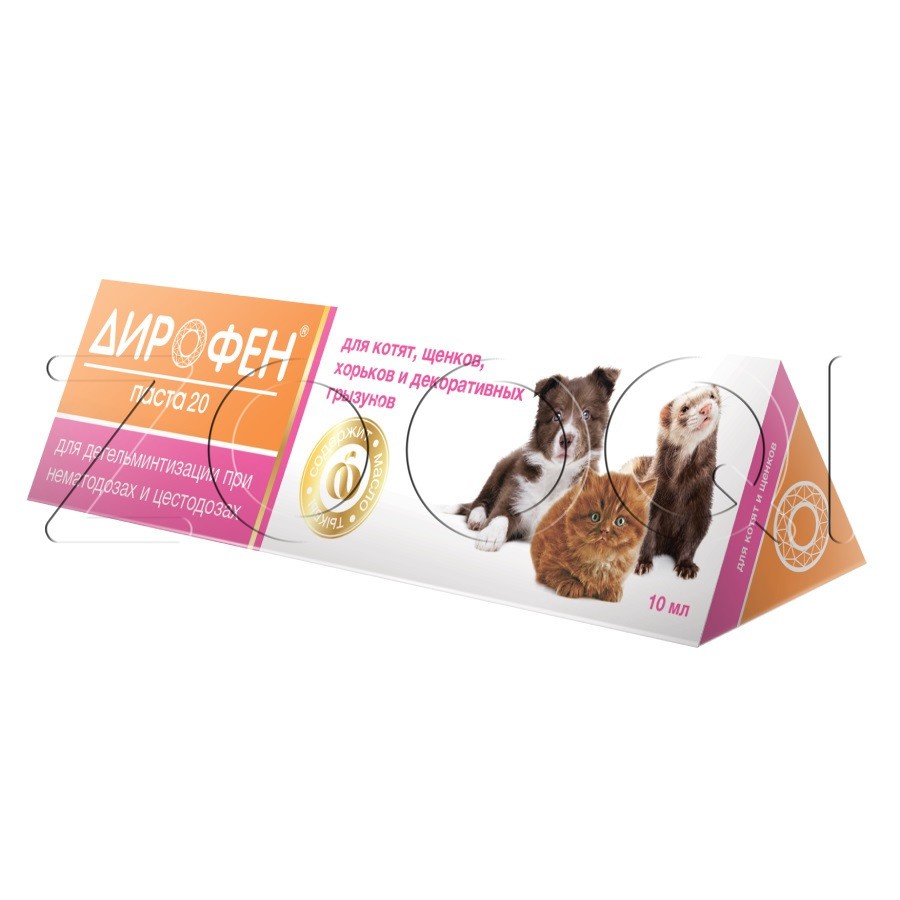 Дирофен Паста 20 для котят, щенков, хорьков и декоративных грызунов – прпарат для дегельминтизации при нематодозах и цестодозах.