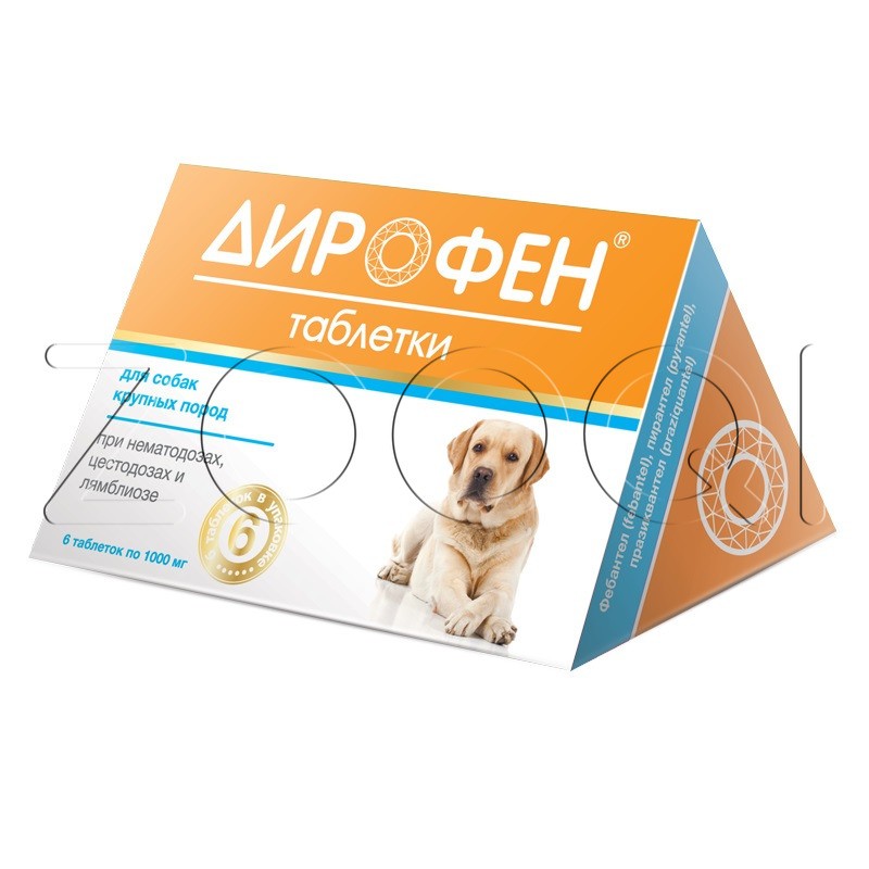 Дирофен Таблетки для собак крупных пород применяются для профилактики и лечения при нематодозах, цестодозах и смешанных нематодо-цестодозных инвазиях.