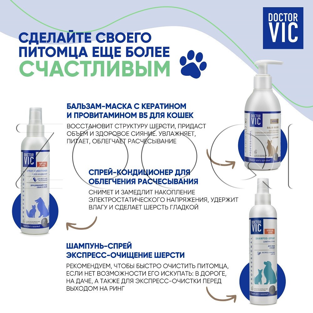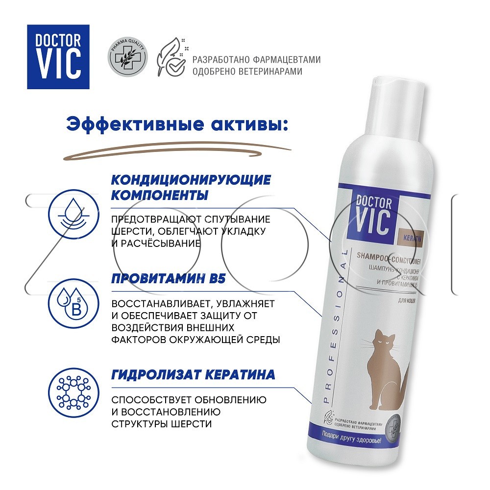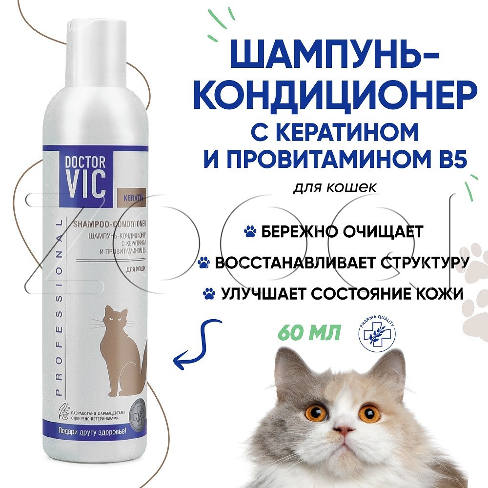 Шампунь кондиционер Doctor VIC для кошек с кератином и провитамином В5 – это экспертная забота о красоте и здоровье вашего питомца.
