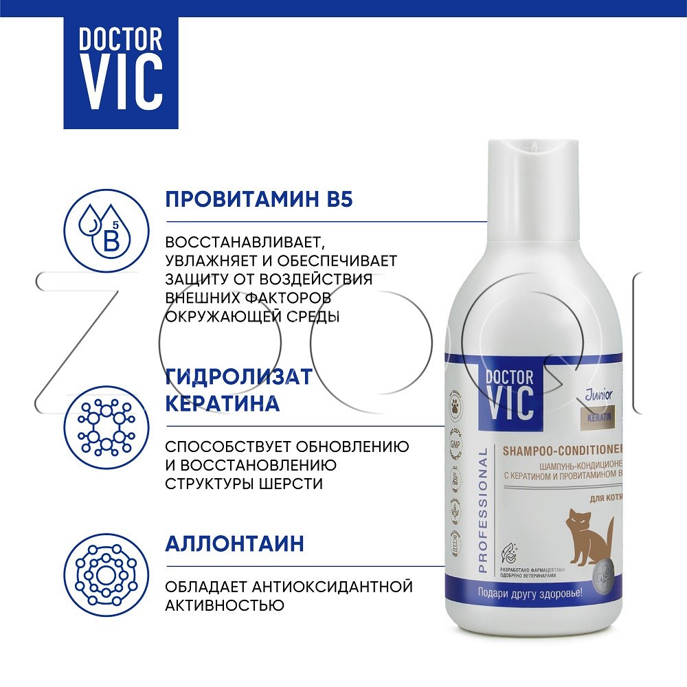 Серия DOCTOR VIC KERATIN JUNIOR разработана специально для деликатного ухода за нежной кожей и шерстью щенков и котят.