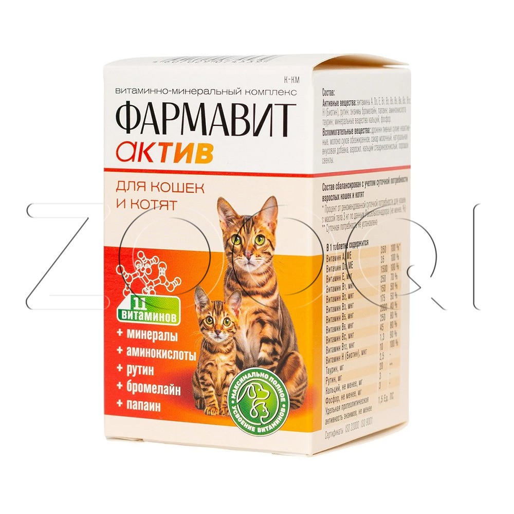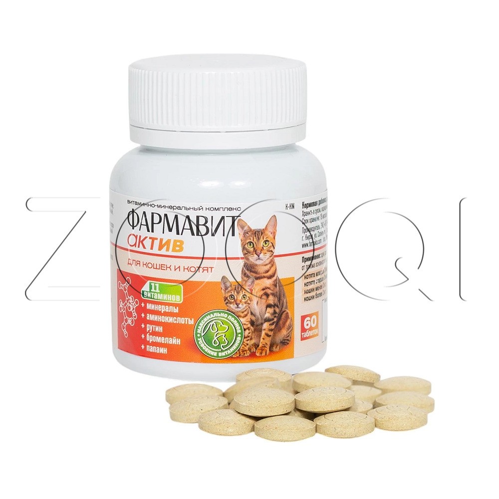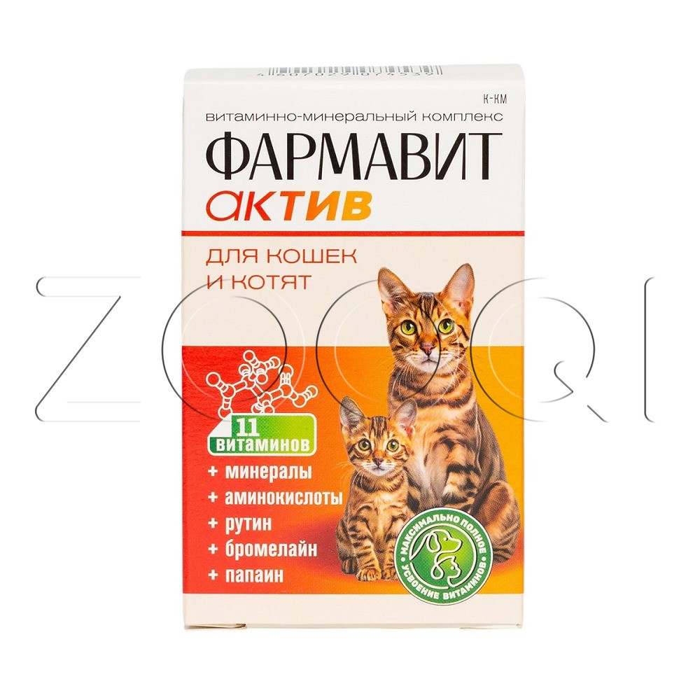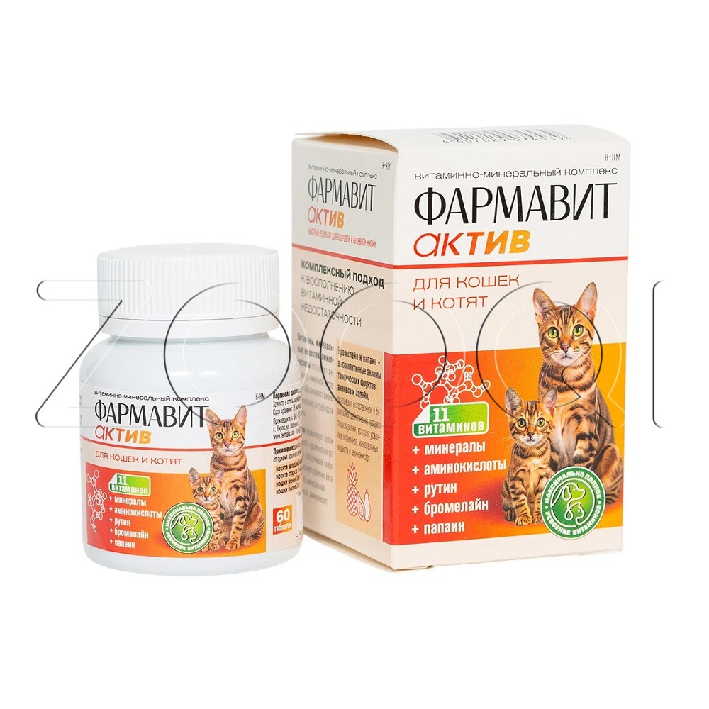 Фармавит Актив – витаминно-минеральный комплекс с фруктовыми энзимами, специально разработанный для поддержания здоровья взрослых кошек и котят.