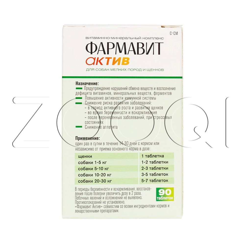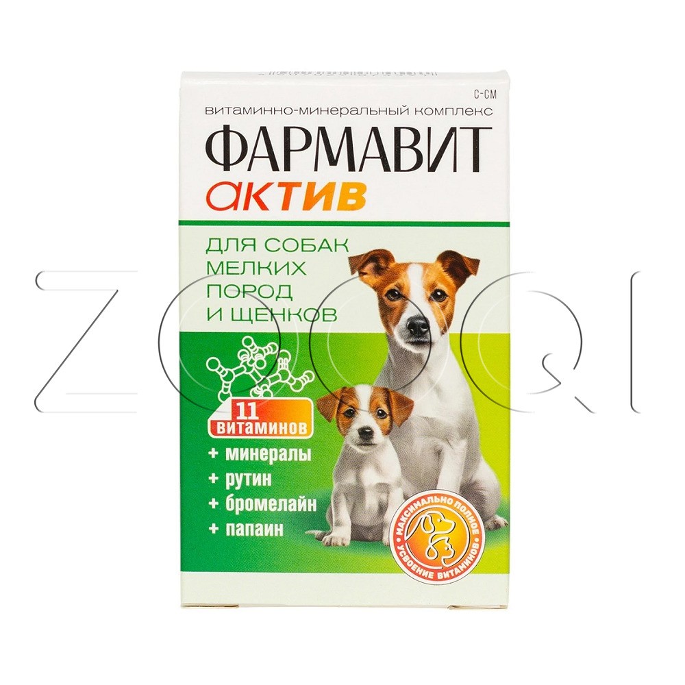 Фармавит Актив – витаминно-минеральный комплекс с фруктовыми энзимами, специально разработанный для поддержания здоровья собак мелких пород и щенков.