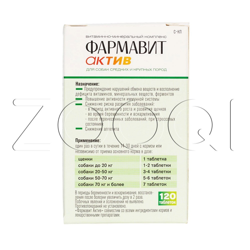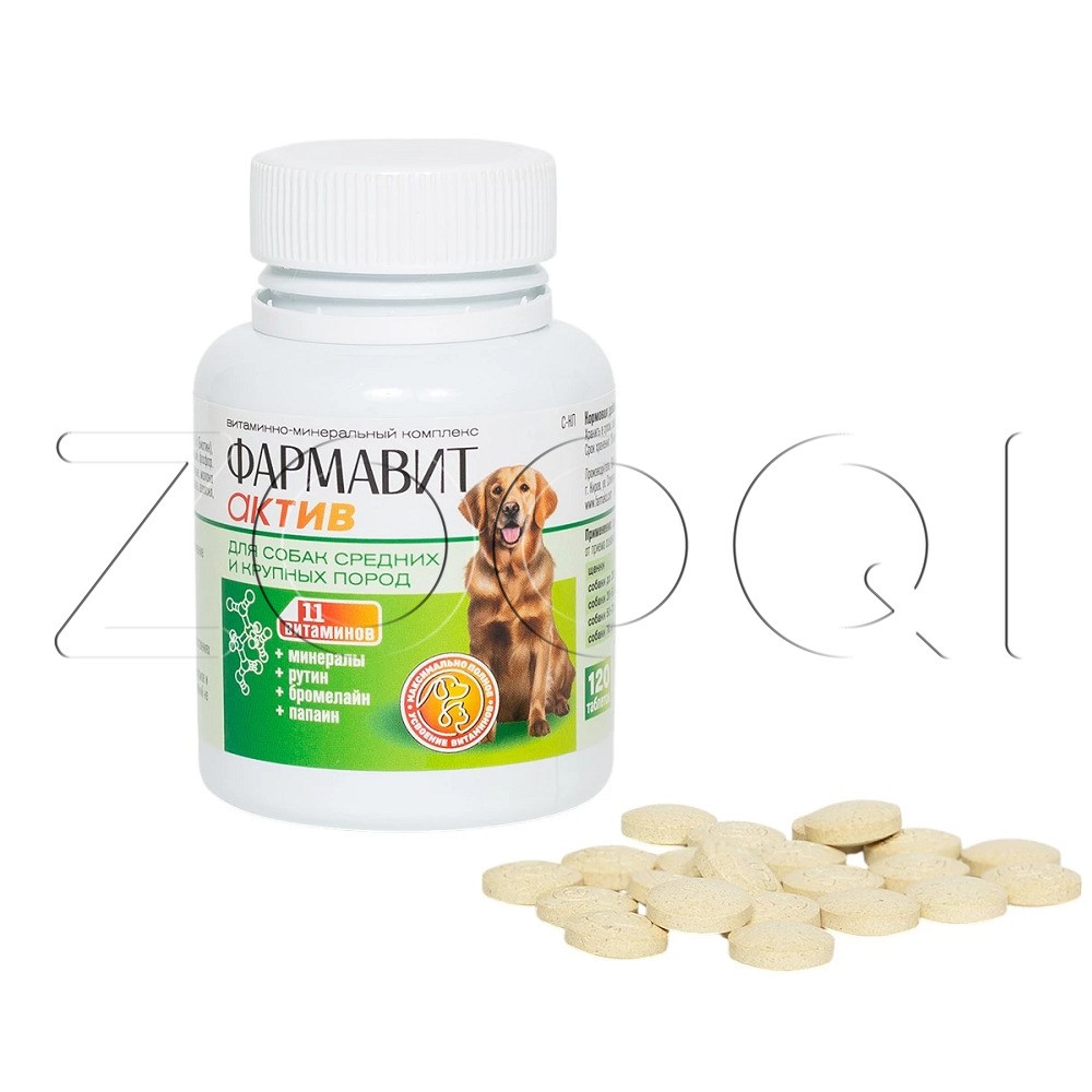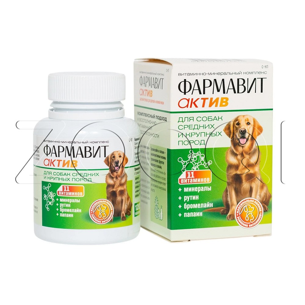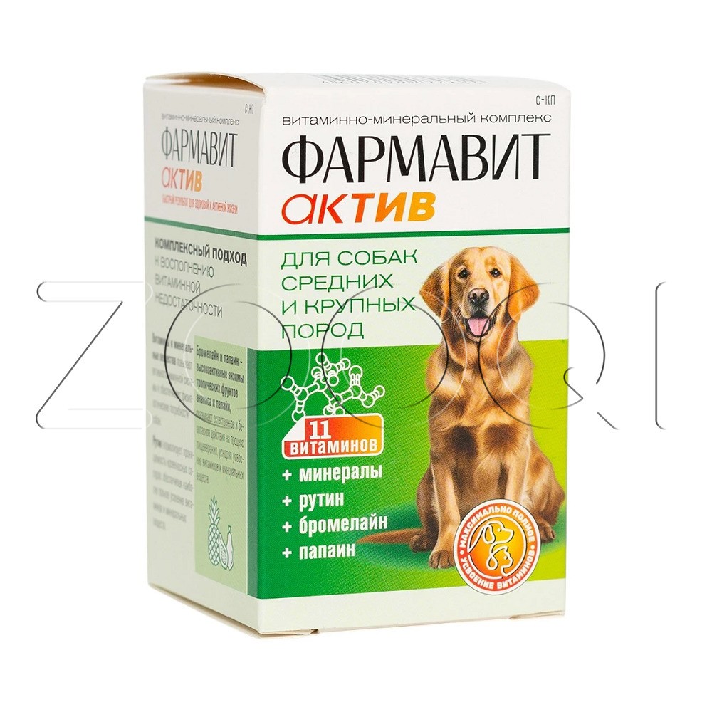 Фармавит Актив – витаминно-минеральный комплекс с фруктовыми энзимами, специально разработанный для поддержания здоровья собак средних и крупных пород.