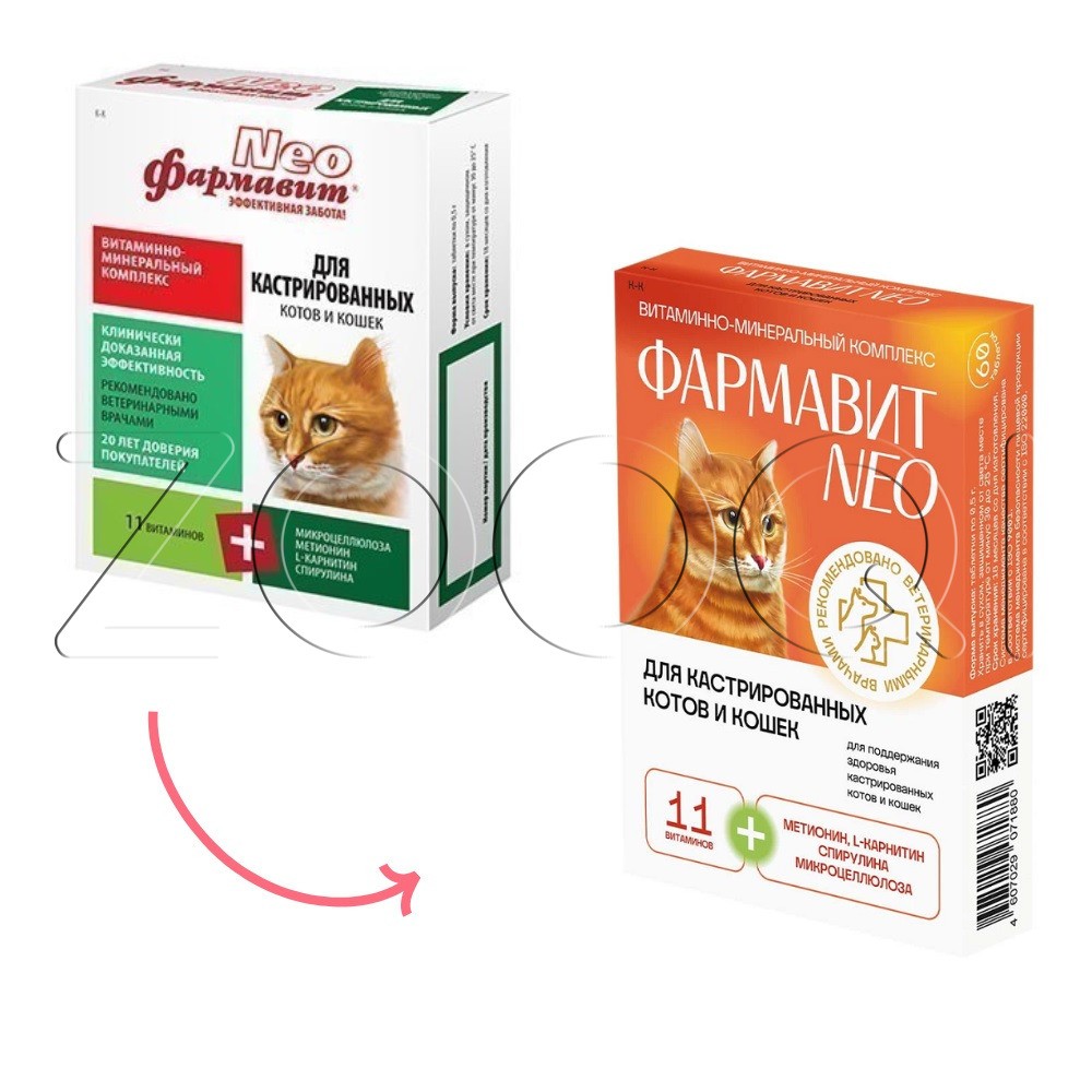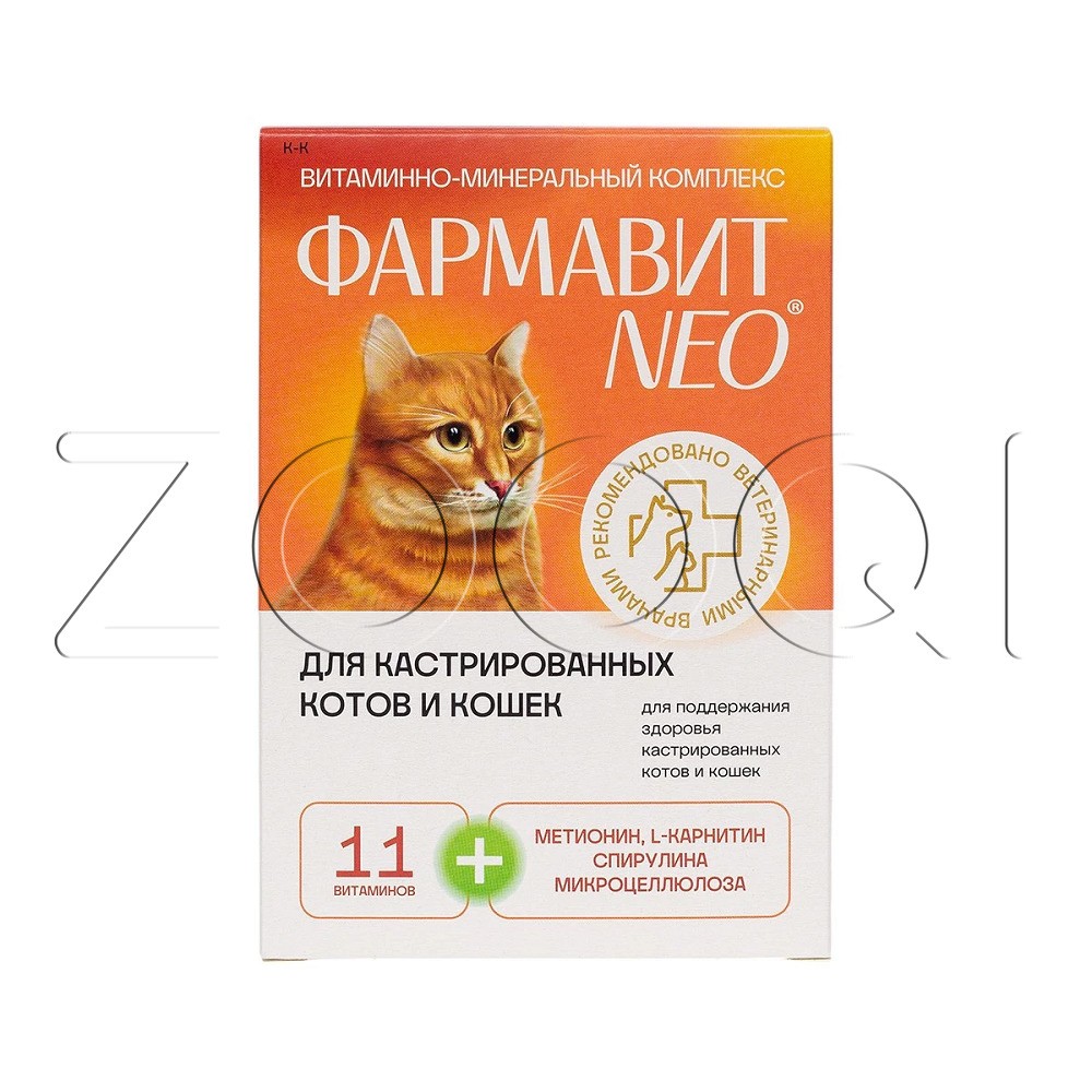Фармавит Neo – комплекс витаминов, минералов и аминокислот, подобранных с учетом физиологических особенностей кастрированных котов и кошек.