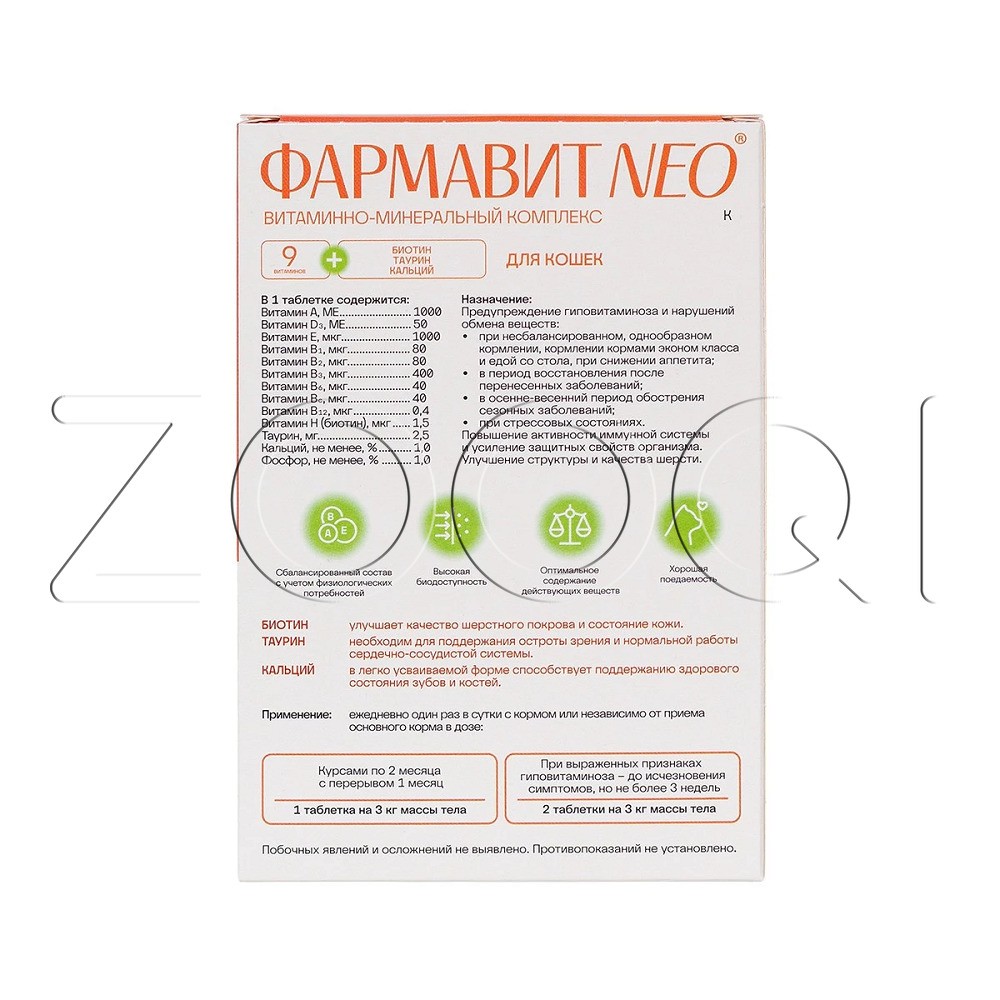 Фармавит Neo – комплекс витаминов, минералов и аминокислот, подобранных с учетом физиологических особенностей кошек.
