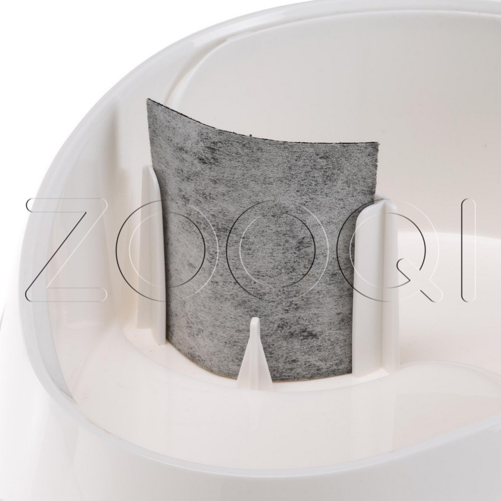 Поилка Vega имеет три места для питья - одно в нижней части и два в верхней. Vega идет в комплекте с угольным фильтром для кристально чистой воды. В комплекте насос мощностью 12 Вт с производительностью 250л/ч и адаптер. Дополнительно в качестве запчасти вы можете приобрести набор угольных фильтров, которые мы рекомендуем менять раз в месяц.