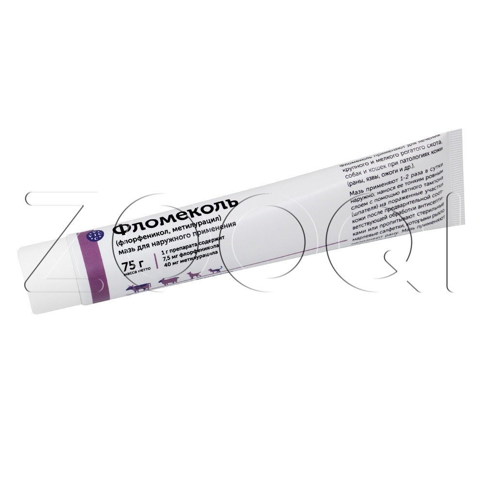 Фломеколь применяют для лечения сельскохозяйственных животных, собак и кошек при патологиях кожи (раны, язвы, ожоги и др.).