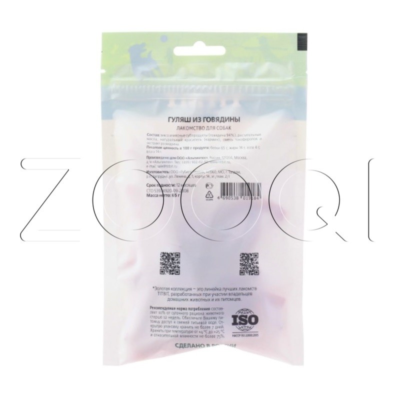 Гуляшь из говядины TITBIT - это мясной деликатес с высоким содержанием мяса (94%) для собак. Благодаря бережной технологии приготовления, имеет привлекательный внешний вид, невероятный вкус и нежную текстуру. Говядина обогощает организм высококачественным животным белком и аминокислотами.