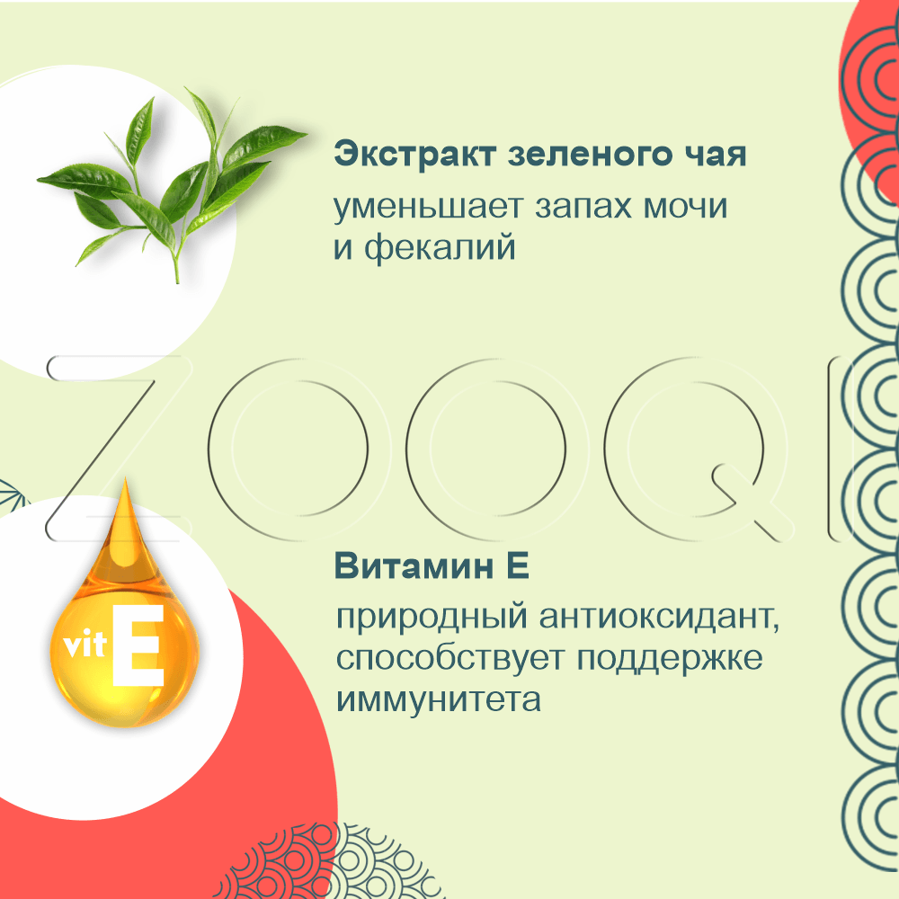 Во все продукты добавлен экстракт зелёного чая, который, благодаря содержанию катехина, нейтрализует неприятные запахи содержимого кишечника.
