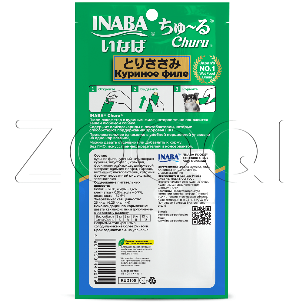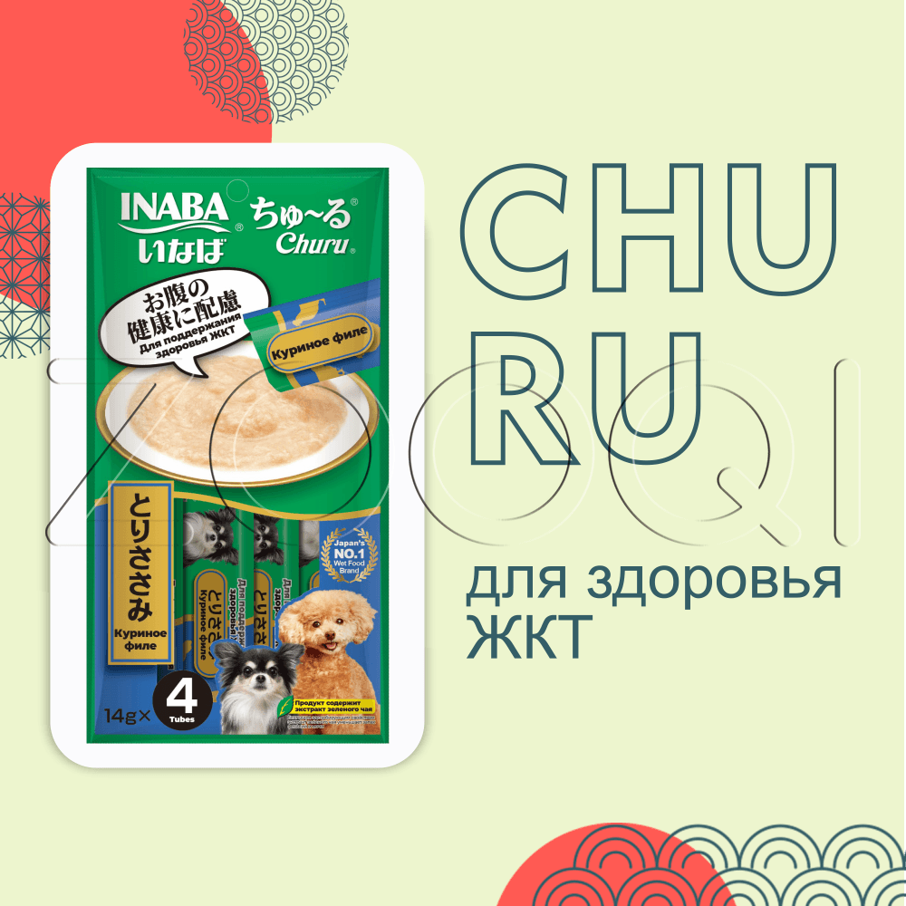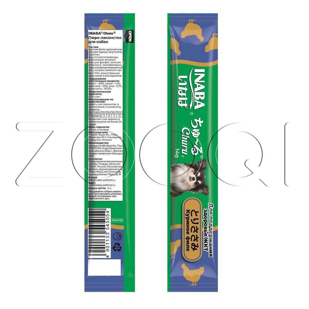 INABA Churu (Чуру) – супер-премиальное функциональное пюре-лакомство для собак на основе кусочков нежного филе фермерской курицы от японского производителя INABA изготовлено исключительно из натуральных полезных ингредиентов и отличается высоким процентом влажности, благодаря чему поддерживается водный баланс организма собаки. Кремовая текстура, напоминяющая пюре или суп, подойдет даже самым привередливым собакам. Содержит в составе олигосахариды и лактобактерии, которые улучшают пищеварение и нормализуют работу ЖКТ.