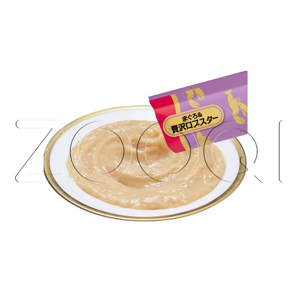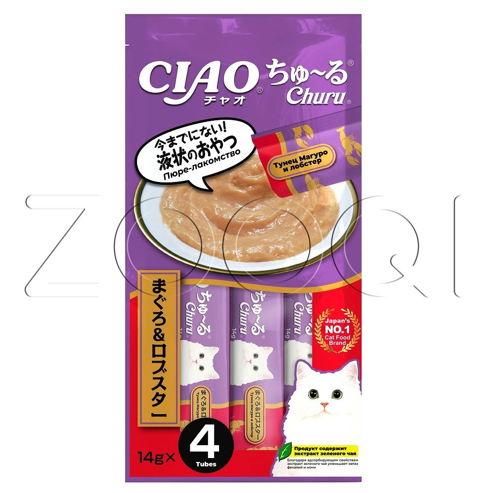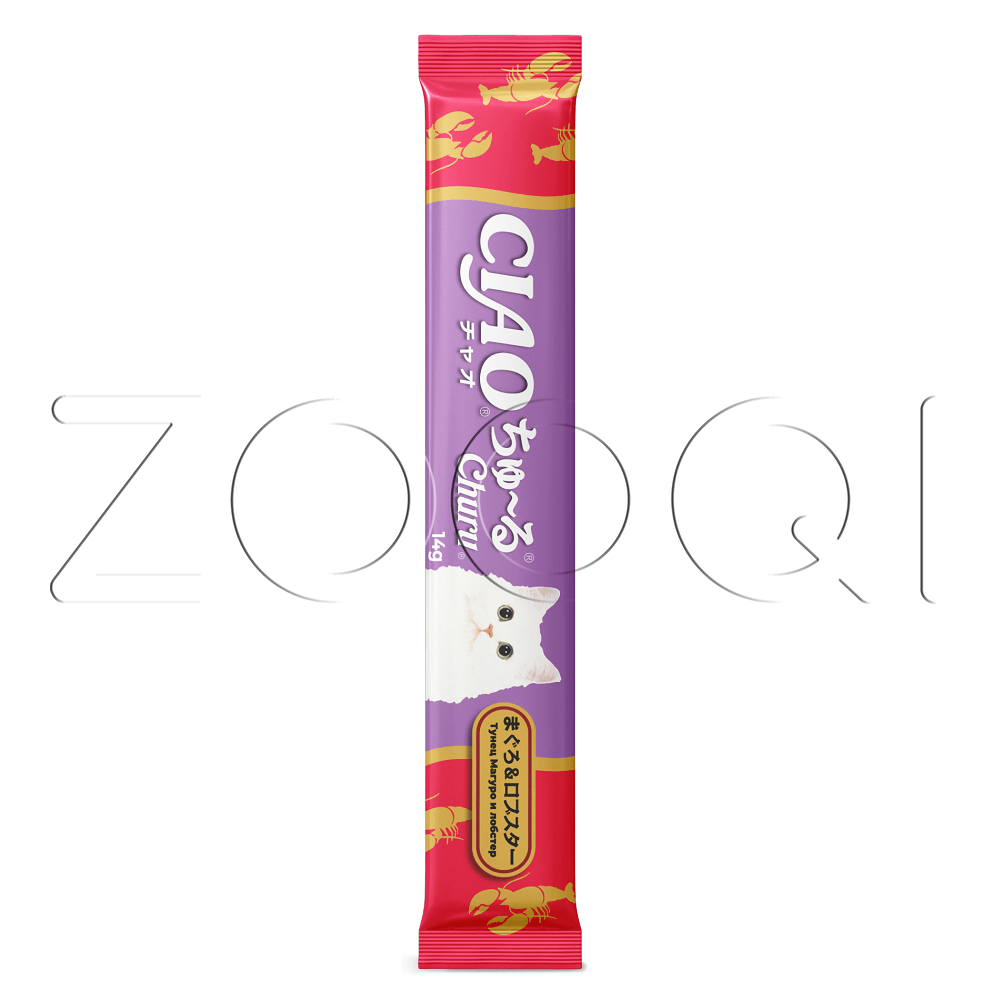 INABA CIAO Churu (Чао Чуру) – супер-премиальное пюре-лакомство для кошек на основе кусочков мяса глубоководного тунца Магуро с добавлением лобстера от японского производителя INABA, изготовлено исключительно из натуральных полезных ингредиентов и отличается высоким процентом влажности, благодаря чему поддерживается водный баланс организма кошки. Кремовая текстура, напоминяющая пюре или суп, подойдет даже самым привередливым кошкам и котам или кошкам с чувствительным пищеварением.