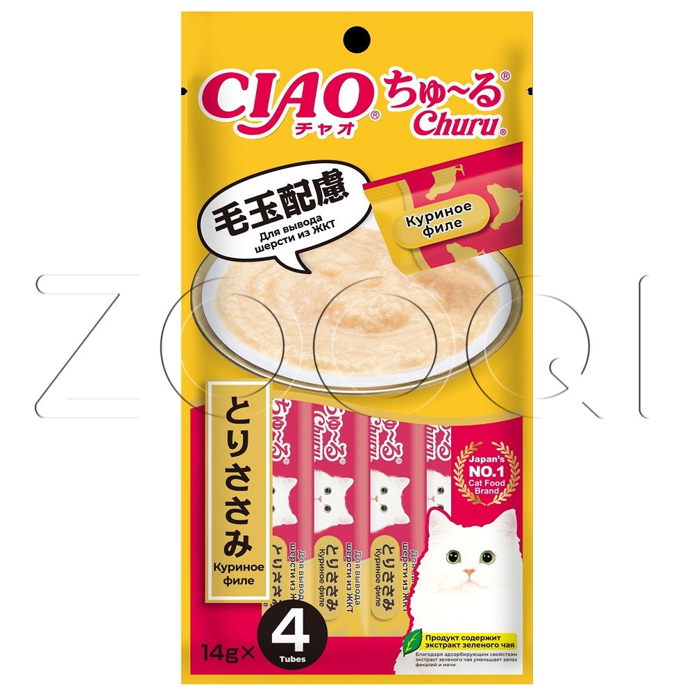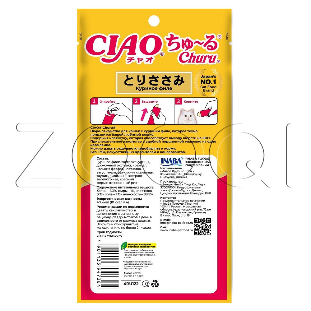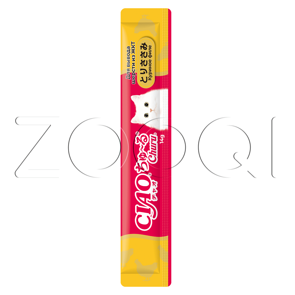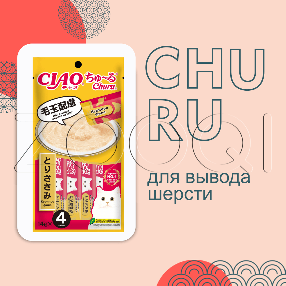 INABA CIAO Churu (Чао Чуру) – супер-премиальное функциональное пюре-лакомство для кошек на основе кусочков нежного филе курицы от японского производителя INABA, изготовлено исключительно из натуральных полезных ингредиентов и отличается высоким процентом влажности, благодаря чему поддерживается водный баланс организма кошки. Кремовая текстура, напоминяющая пюре или суп, подойдет даже самым привередливым кошкам и котам или кошкам с чувствительным пищеварением. Содержит в составе клетчатку, которая способствует выводу шерсти и волосяных комочков из ЖКТ.