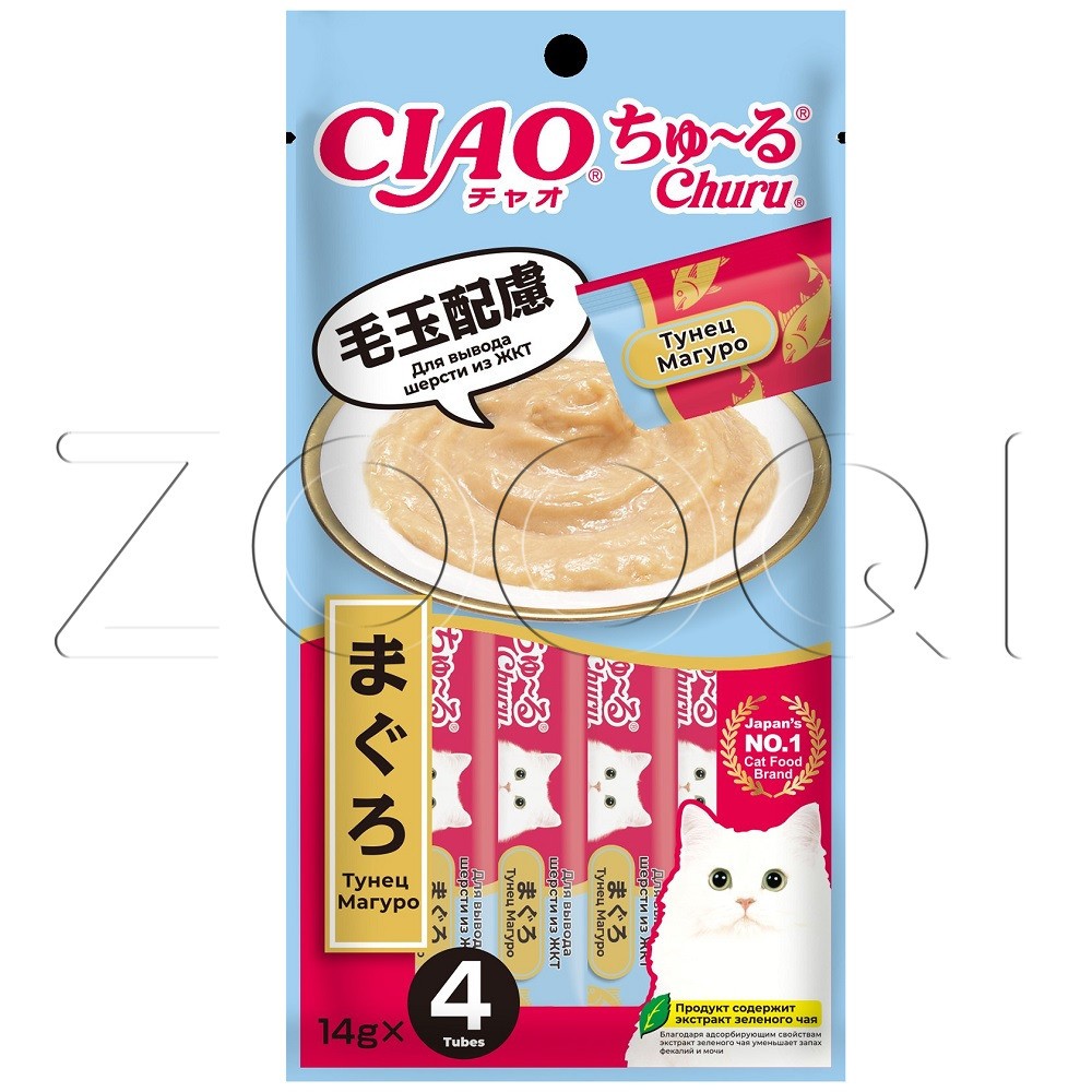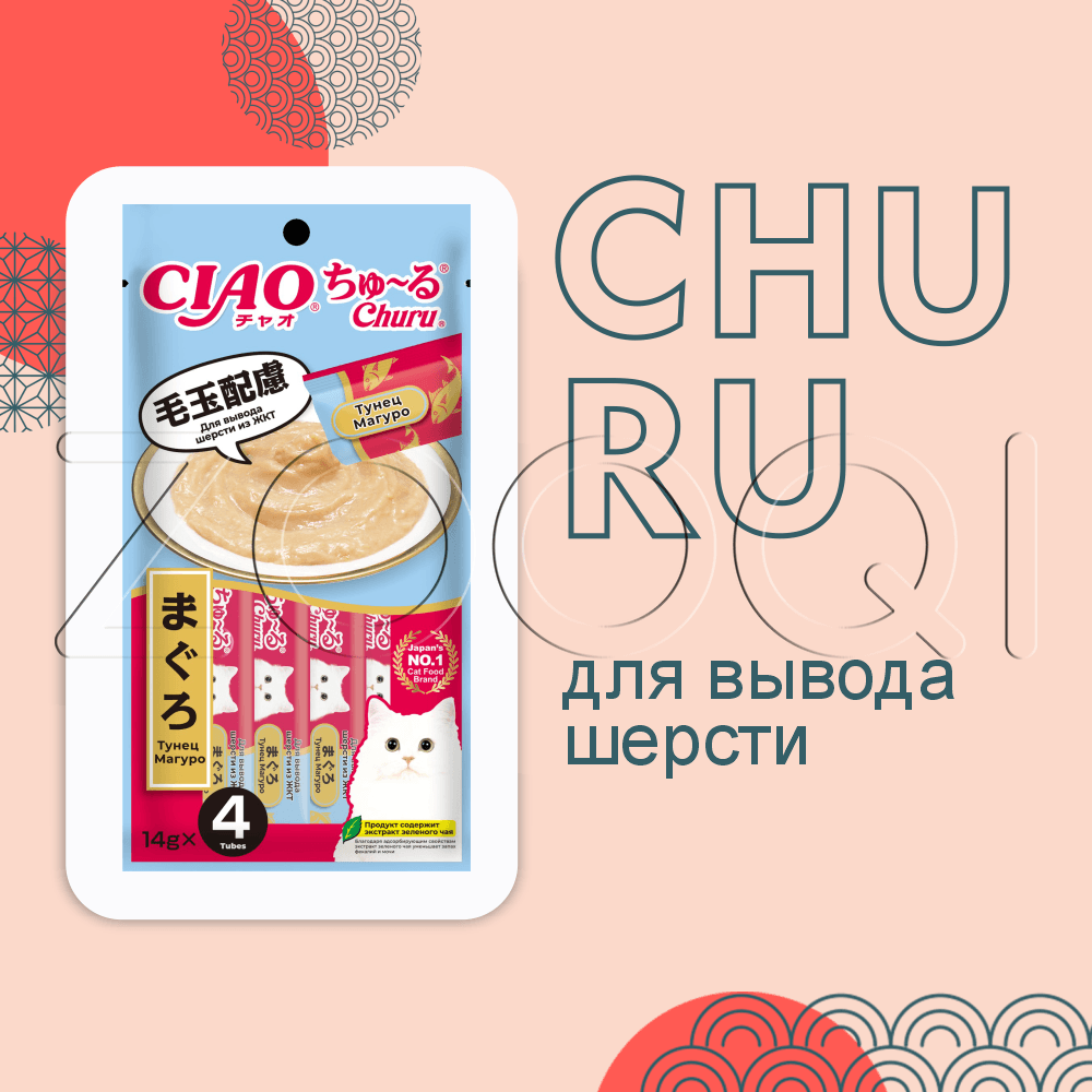 INABA CIAO Churu (Чао Чуру) – супер-премиальное функциональное пюре-лакомство для кошек на основе кусочков мяса тунца Магуро с экстрактом морского гребешка от японского производителя INABA, изготовлено исключительно из натуральных полезных ингредиентов и отличается высоким процентом влажности, благодаря чему поддерживается водный баланс организма кошки. Кремовая текстура, напоминяющая пюре или суп, подойдет даже самым привередливым кошкам и котам или кошкам с чувствительным пищеварением. Содержит в составе клетчатку, которая способствует выводу шерсти и волосяных комочков из ЖКТ.