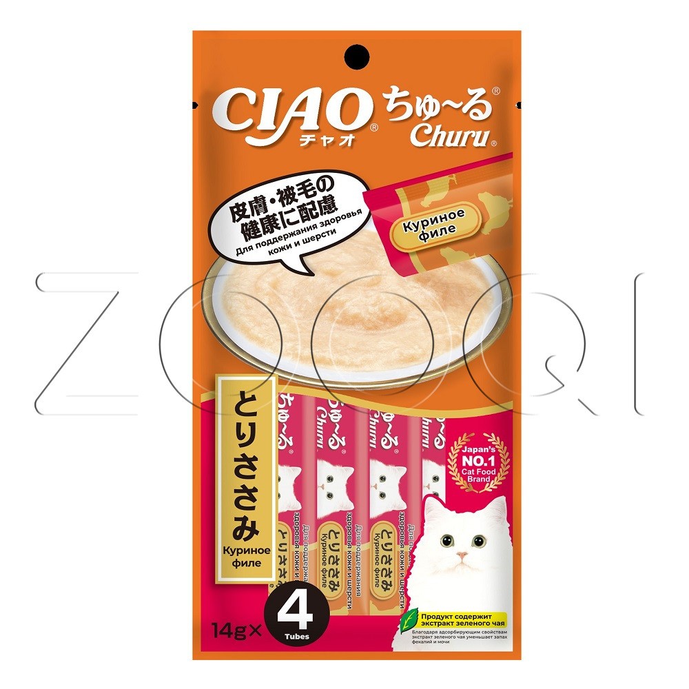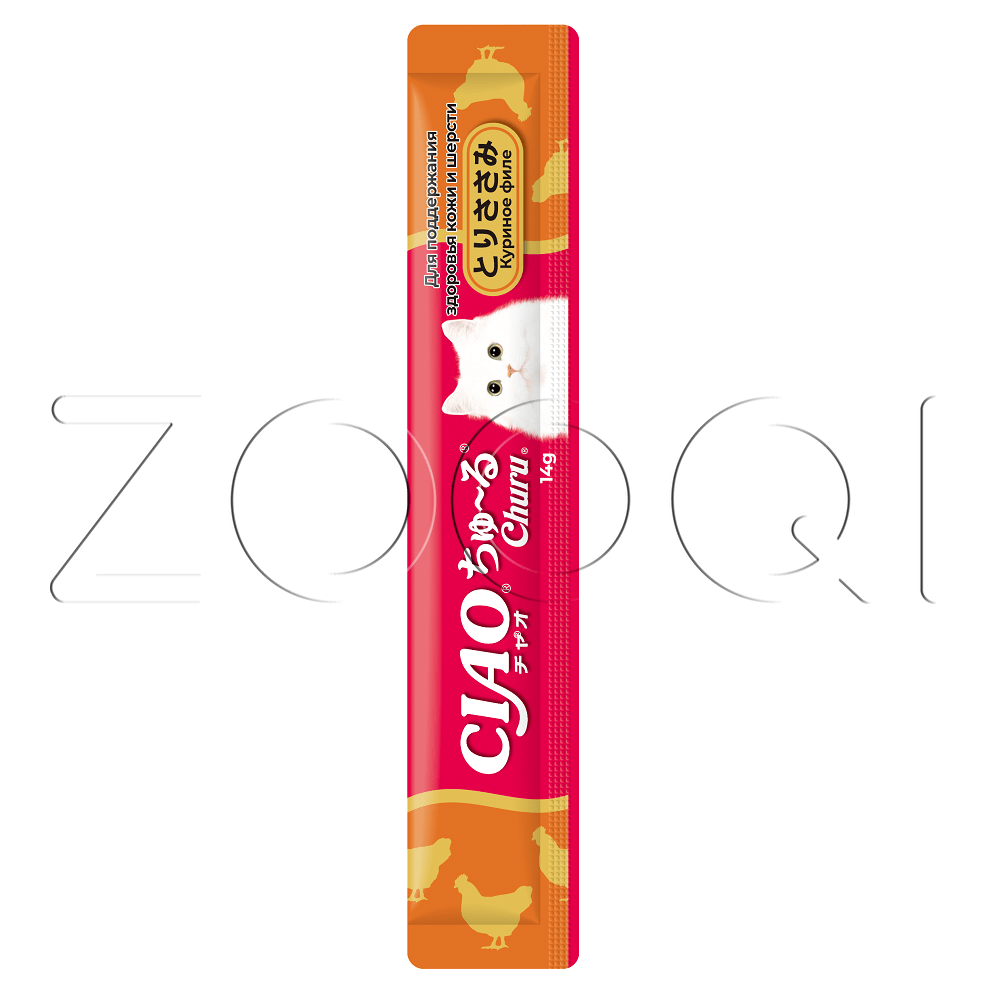 INABA CIAO Churu (Чао Чуру) – супер-премиальное функциональное пюре-лакомство для кошек на основе кусочков нежного филе фермерской курицы от японского производителя INABA, изготовлено исключительно из натуральных полезных ингредиентов и отличается высоким процентом влажности, благодаря чему поддерживается водный баланс организма кошки. Кремовая текстура, напоминяющая пюре или суп, подойдет даже самым привередливым кошкам и котам или кошкам с чувствительным пищеварением. Содержит в составе коллаген и рыбий жир, которые способствуют поддержанию красоты и здоровья кожи и шерсти.