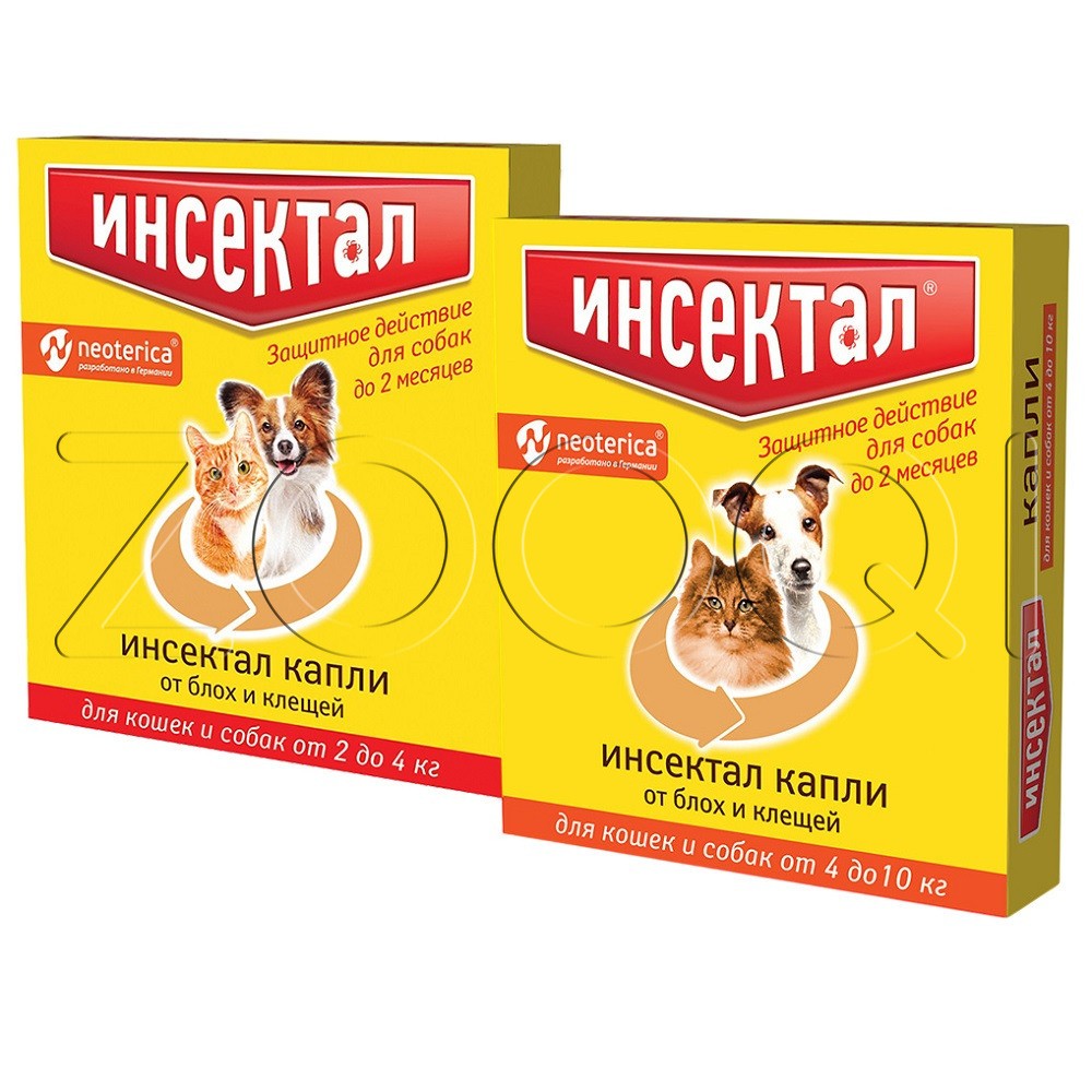 Инсектал капли назначают собакам и кошкам для лечения и профилактики энтомозов, отодектоза, саркоптоза, нотоэдроза, акарозов, вызываемых иксодовыми клещами.