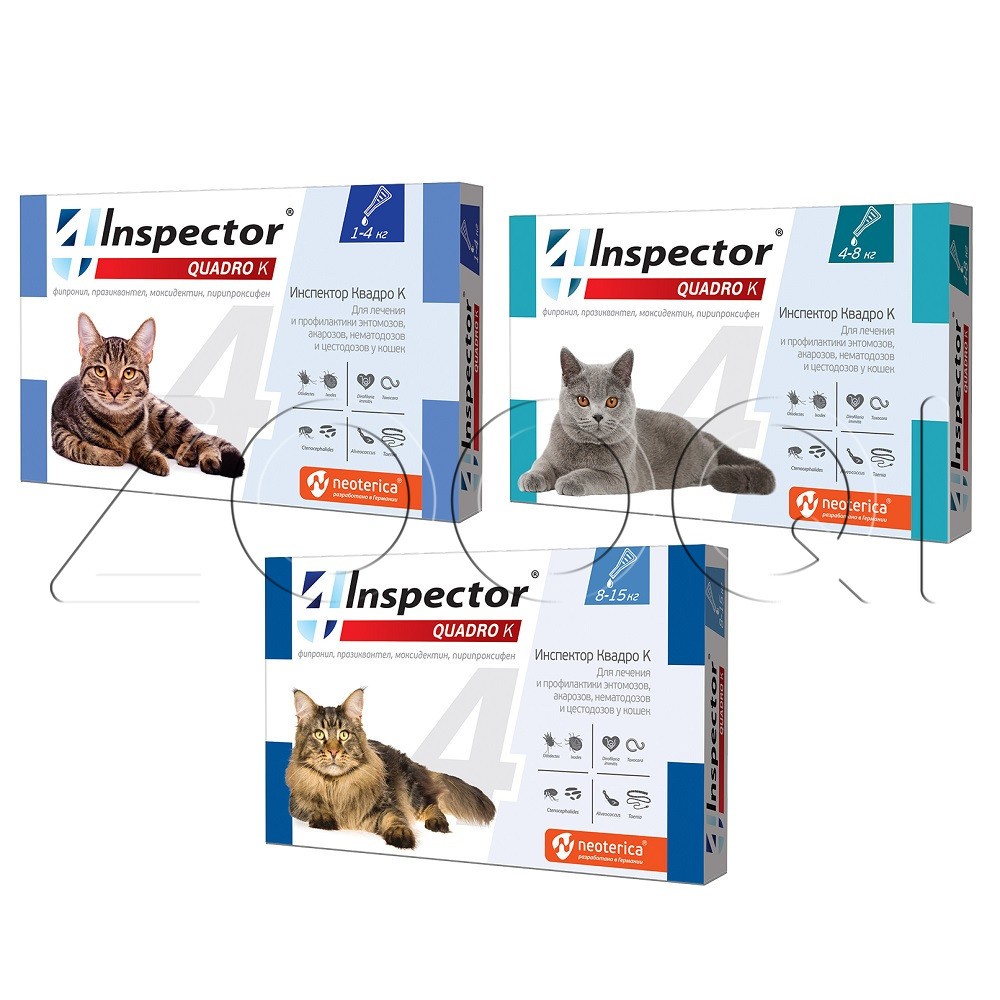 Инспектор Квадро К (Inspector Quadro K) – комплексный препарат от 20 внешних и внутренних паразитов.