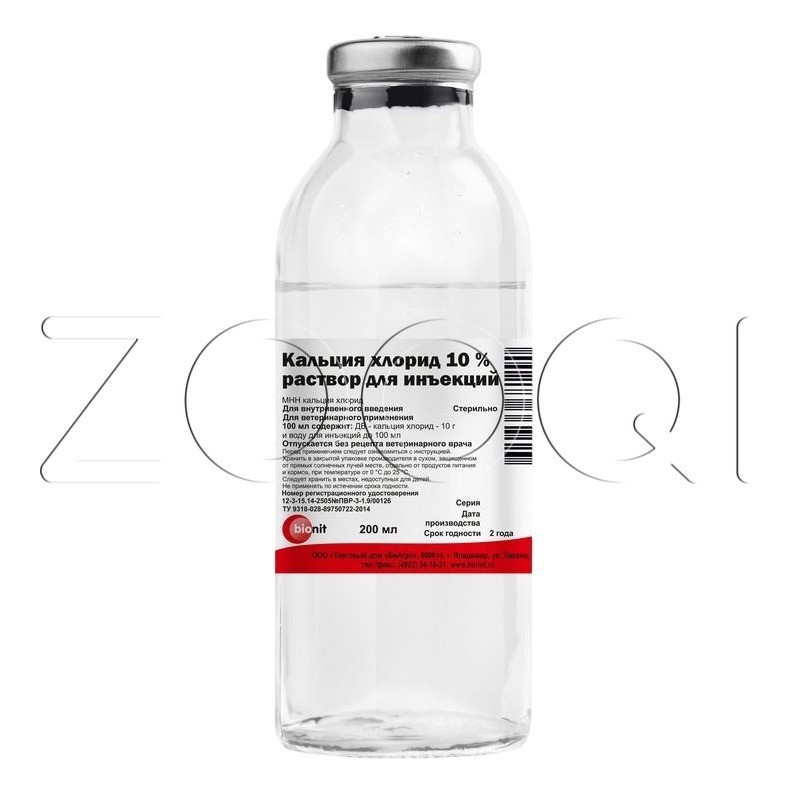 Кальция хлорид 10 % раствор для инъекций назначают животным в целях повышения содержания кальция в крови, в качестве противовоспалительного, кровоостанавливающего и десенсибилизирующего средства, для нормализации деятельности симпатической нервной системы при следующих патологических состояниях: