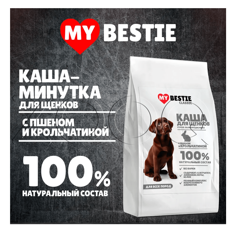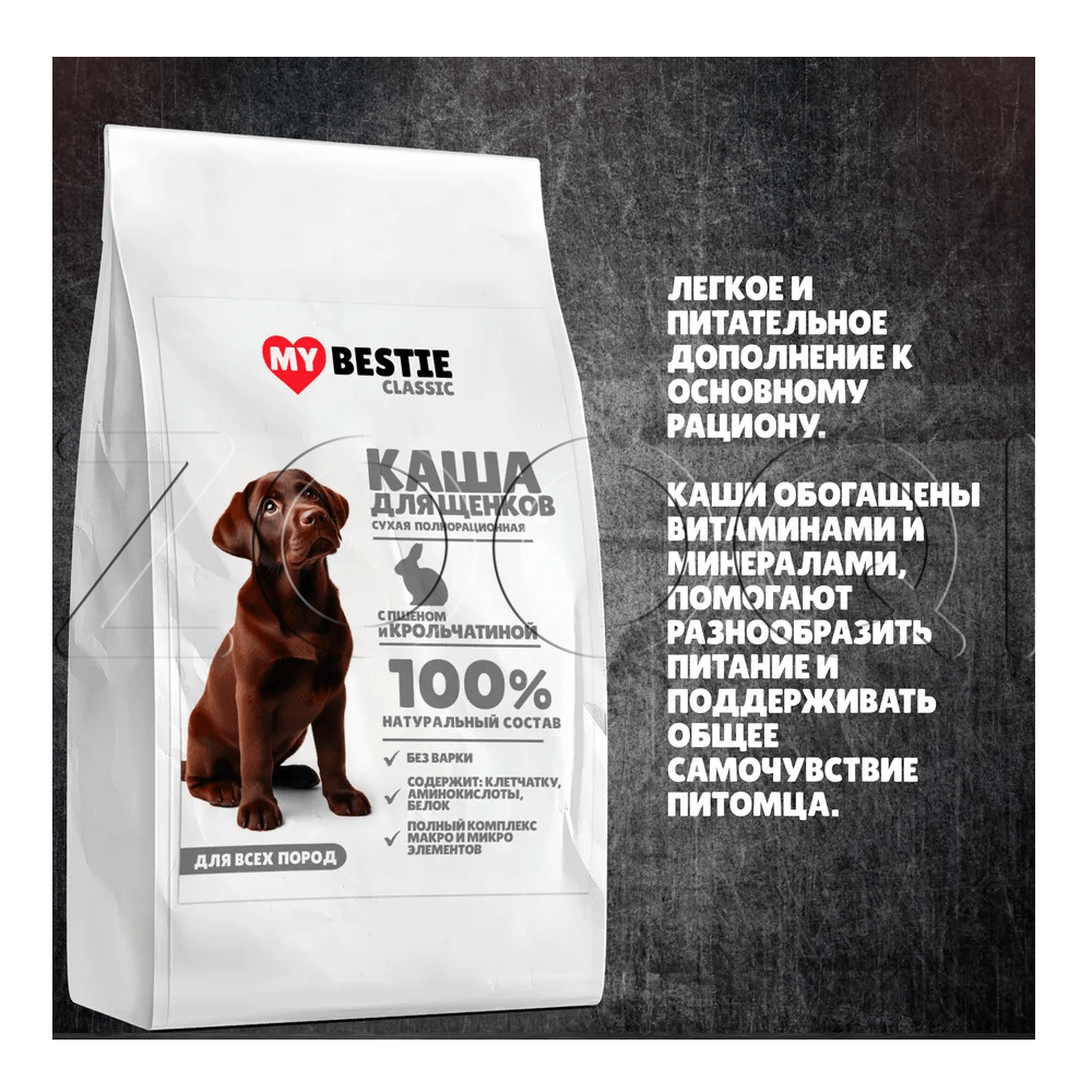 MуBestie Classic Полнорационная сухая каша с пшеном и крольчатиной для щенков всех пород.