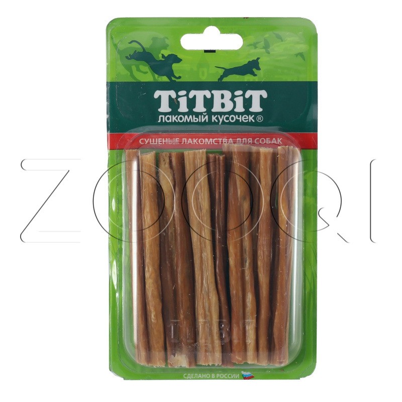 Высушенные говяжьи кишки длиной 11 см. Легкоусвояемое лакомство, богатое витаминами и ферментами микрофлоры кишечника крупного рогатого скота. Имеют большую энергетическую ценность из-за повышенного содержания жира. Богаты переваримыми протеинами, которые содержат все незаменимые аминокислоты и потому усваиваются на 90-95%. Содержат минеральные вещества в большем количестве, чем все остальные продукты (в том числе кальций, магний и фосфор), жирорастворимые витамины, а также водорастворимые витамины. Очищает зубы у мелких пород собак, продукт полезен для стимуляции пищеварения.