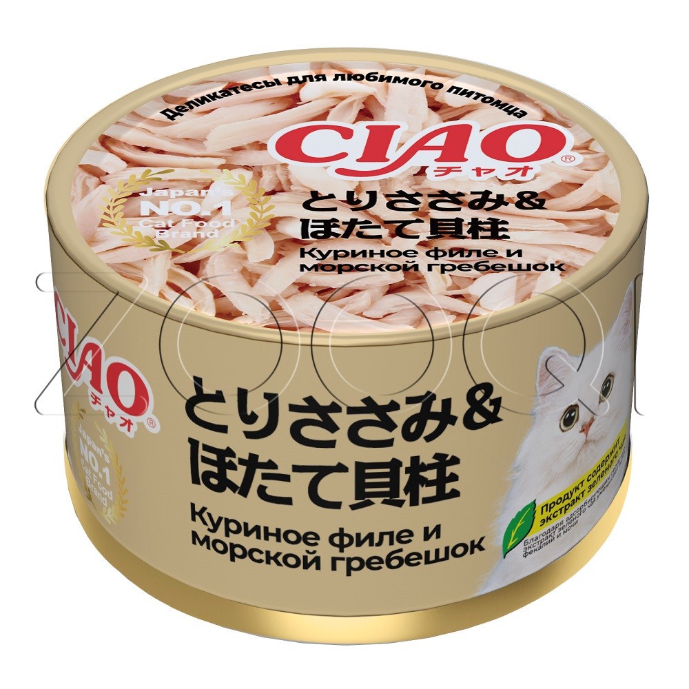 INABA CIAO Сan (ЧАО Кэн) – супер-премиальный влажный корм для кошек от японского производителя INABA приготовлен на основе кусочков филе фермерской курицы с добавлением морского гребешка. Внутри упаковки ароматные нежные волокна в желе, которые подойдут даже самым привередливым кошкам и кошкам с чувствительным пищеварением.