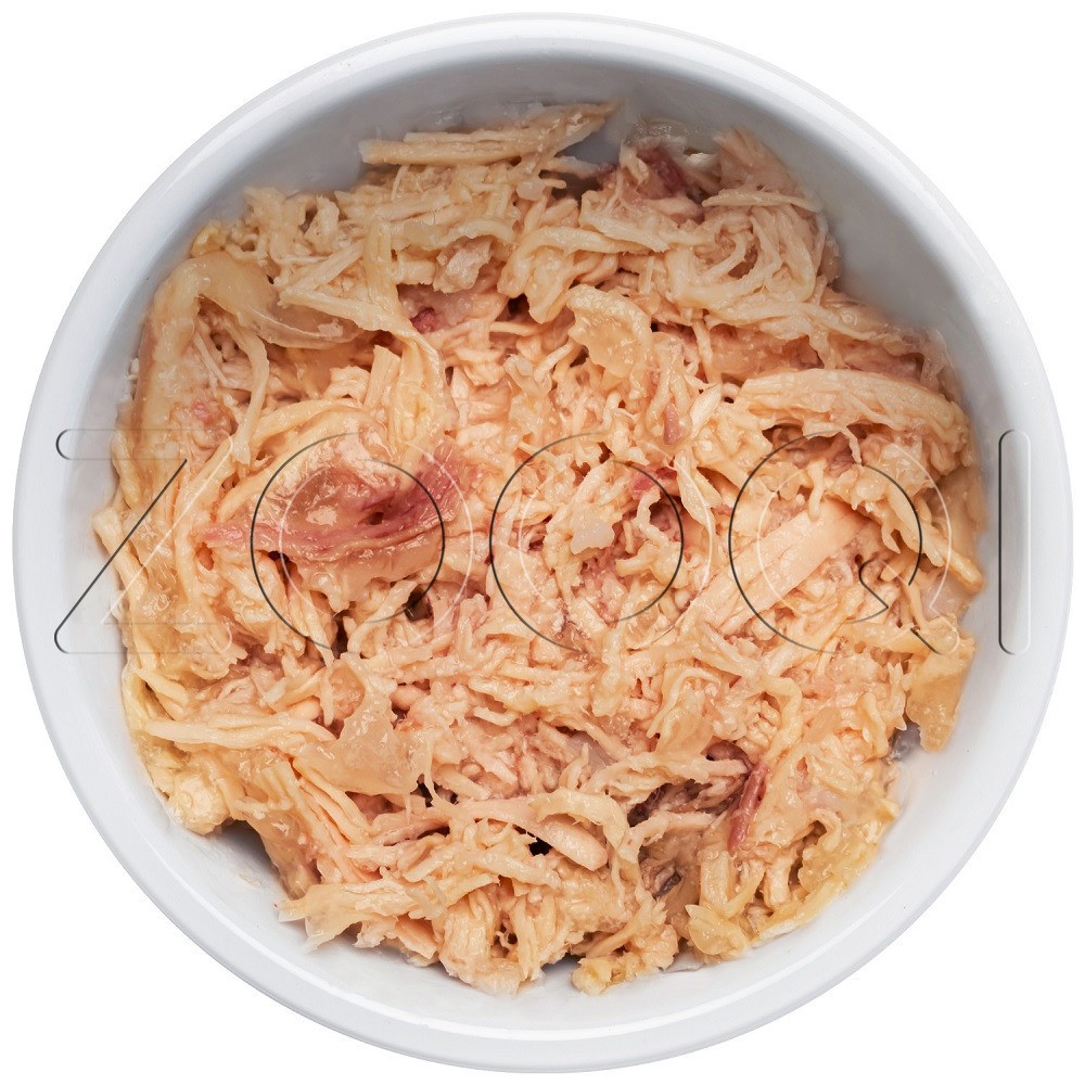 Консервы из курицы изготовлены из нежного белого мяса куриных грудок с добавлением мяса утки.