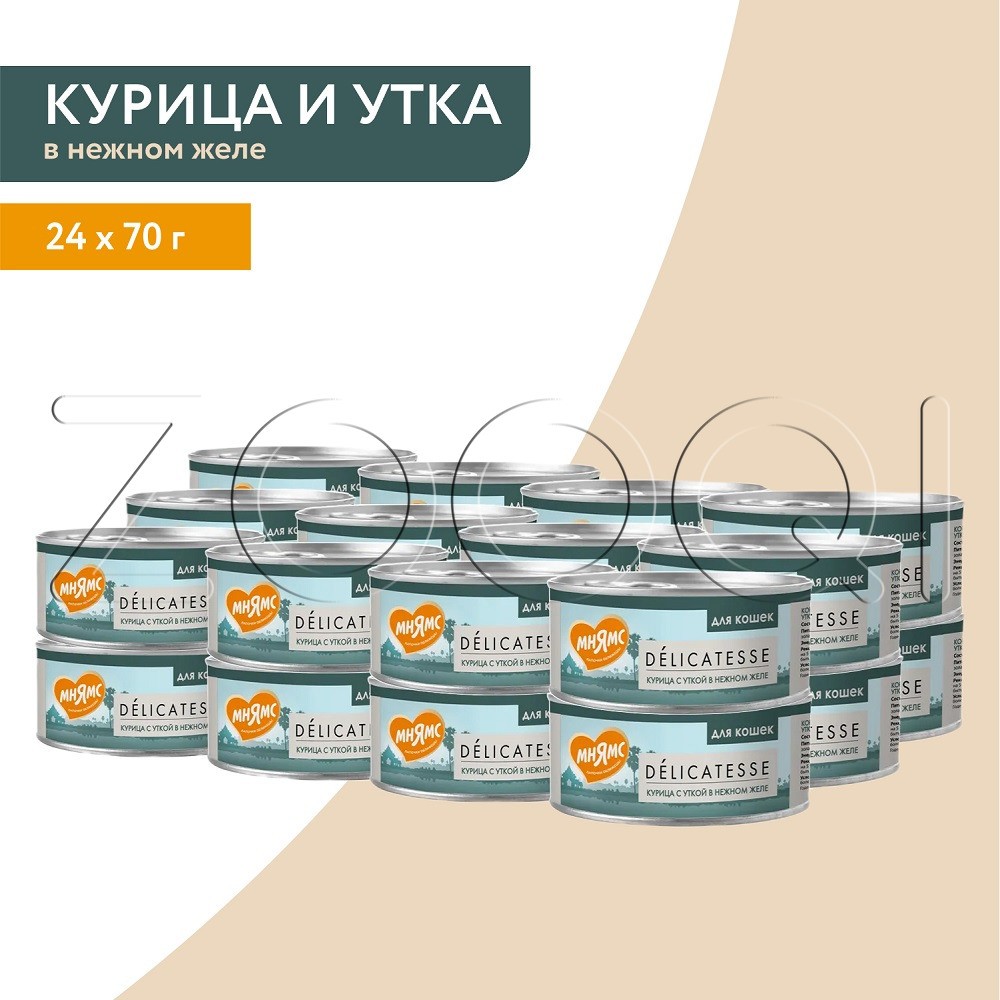 Мнямс Деликате – консервированный дополительный корм с курицей и уткой в нежном желе для кошек.