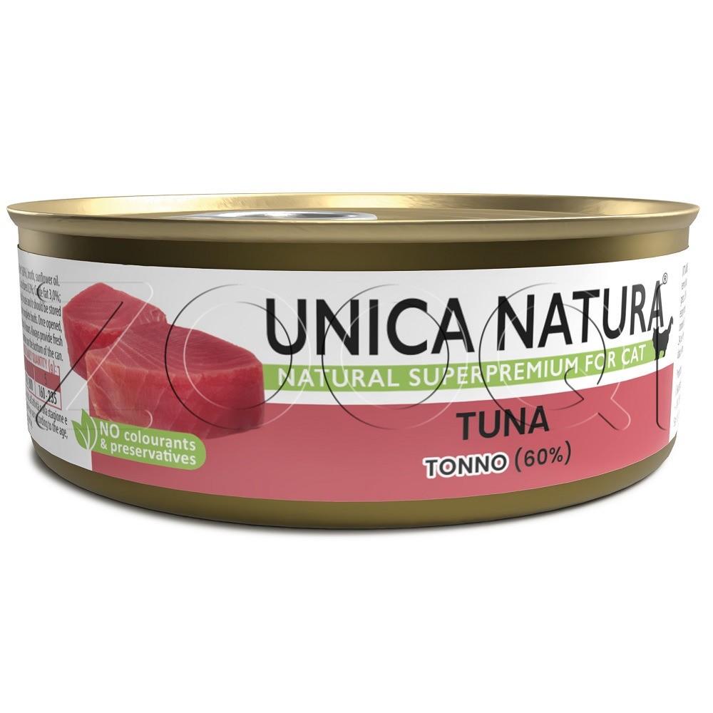 Влажный корм Unica Natura с тунцом в бульоне для взрослых кошек. Линейка продукции Unica Natura использует уникальные продуктовые и вкусовые сочетания, которые привлекают кошек, не добавляя ароматизаторы и усилители вкуса.