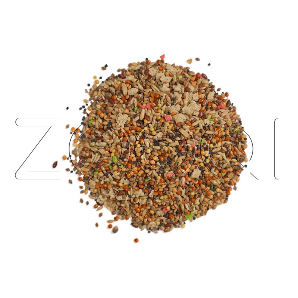 Семя канареечное, просо красное, просо желтое, семена пайзы, рапс, овес голозерный, витаминные гранулы, юкка шидигера, семена льна, семена конопли технической, комплекс пробиотиков, натуральный адсорбент - дрожжи (S.cerevisae).