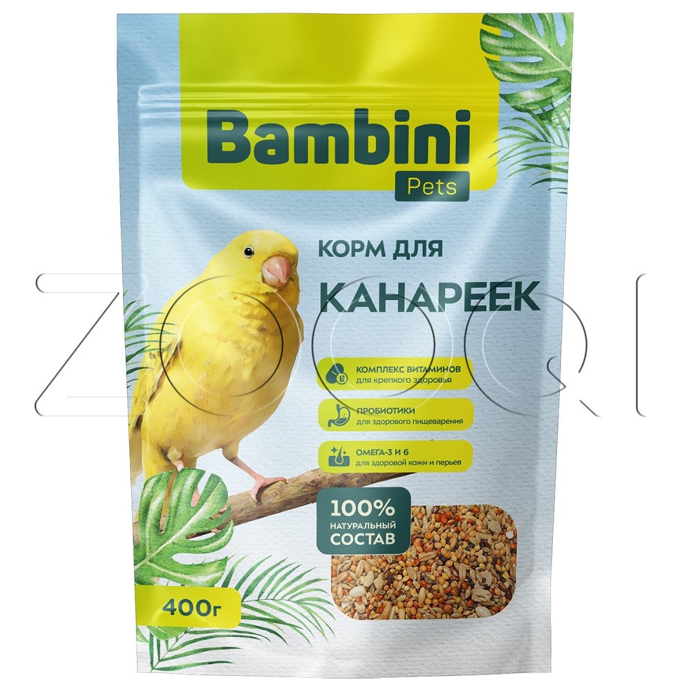 Bambini Pets сбалансированный повседневный корм для канареек создан с заботой о ваших малышах. Ингредиенты подобраны с учетом особенностей питания канареек в дикой природе. В состав рациона входит комплекс витаминов для крепкого здоровья, омега-3 и 6 для здоровой кожи и перьев, пробиотики для здорового пищеварения.