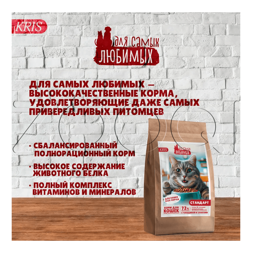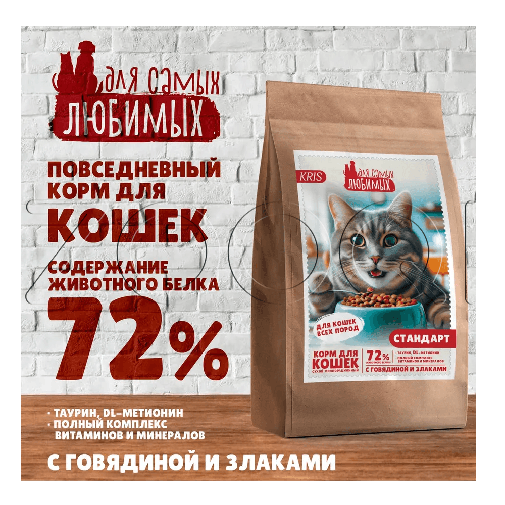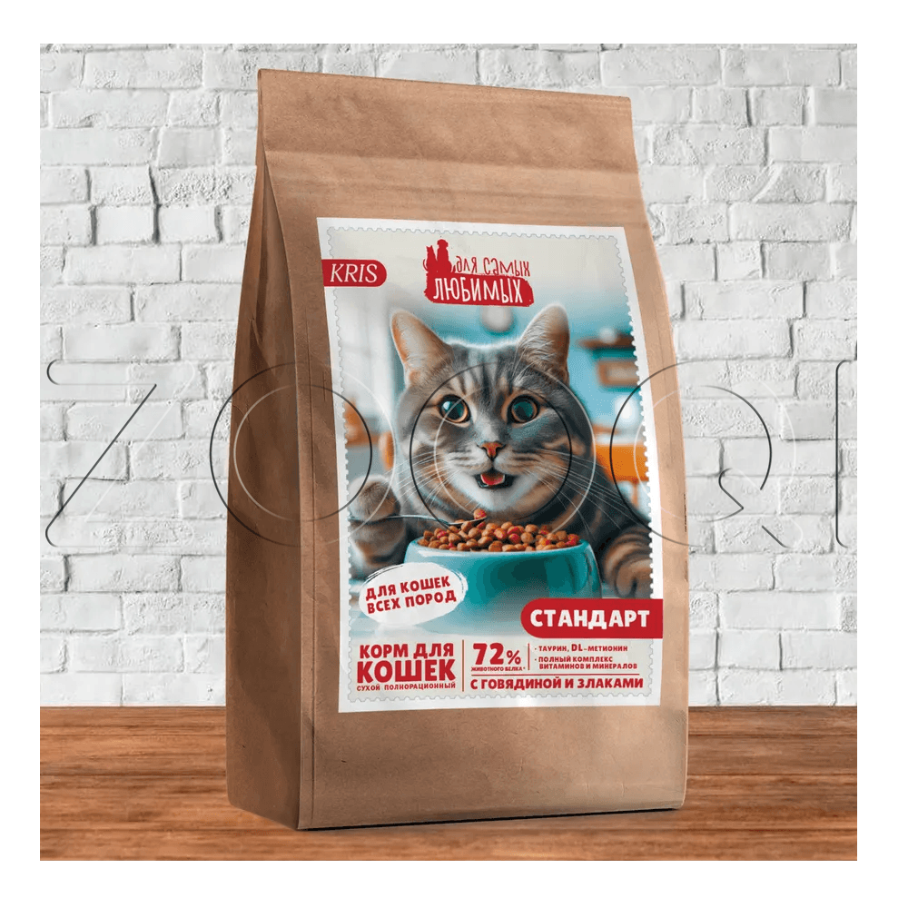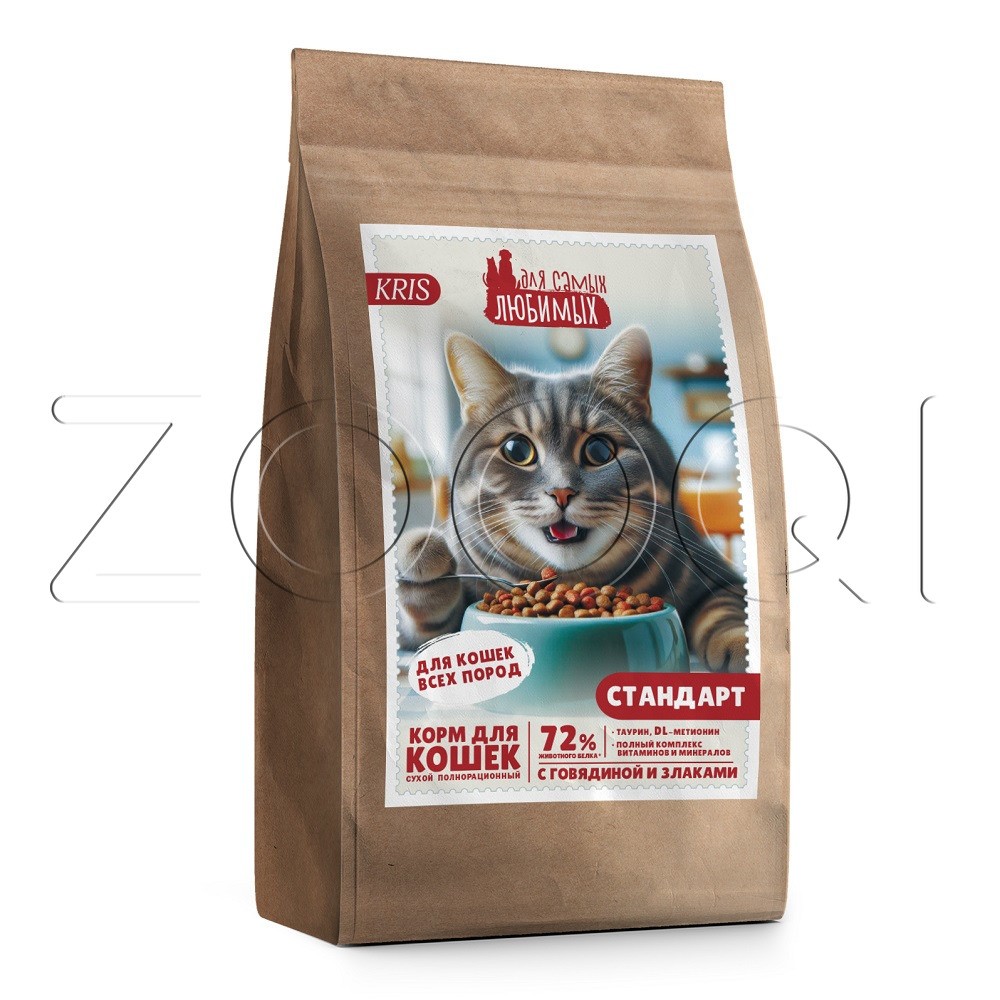 ДЛЯ САМЫХ ЛЮБИМЫХ Стандарт «С говядиной и злаками» для кошек – полнорационный сухой корм для взрослых кошек всех пород.