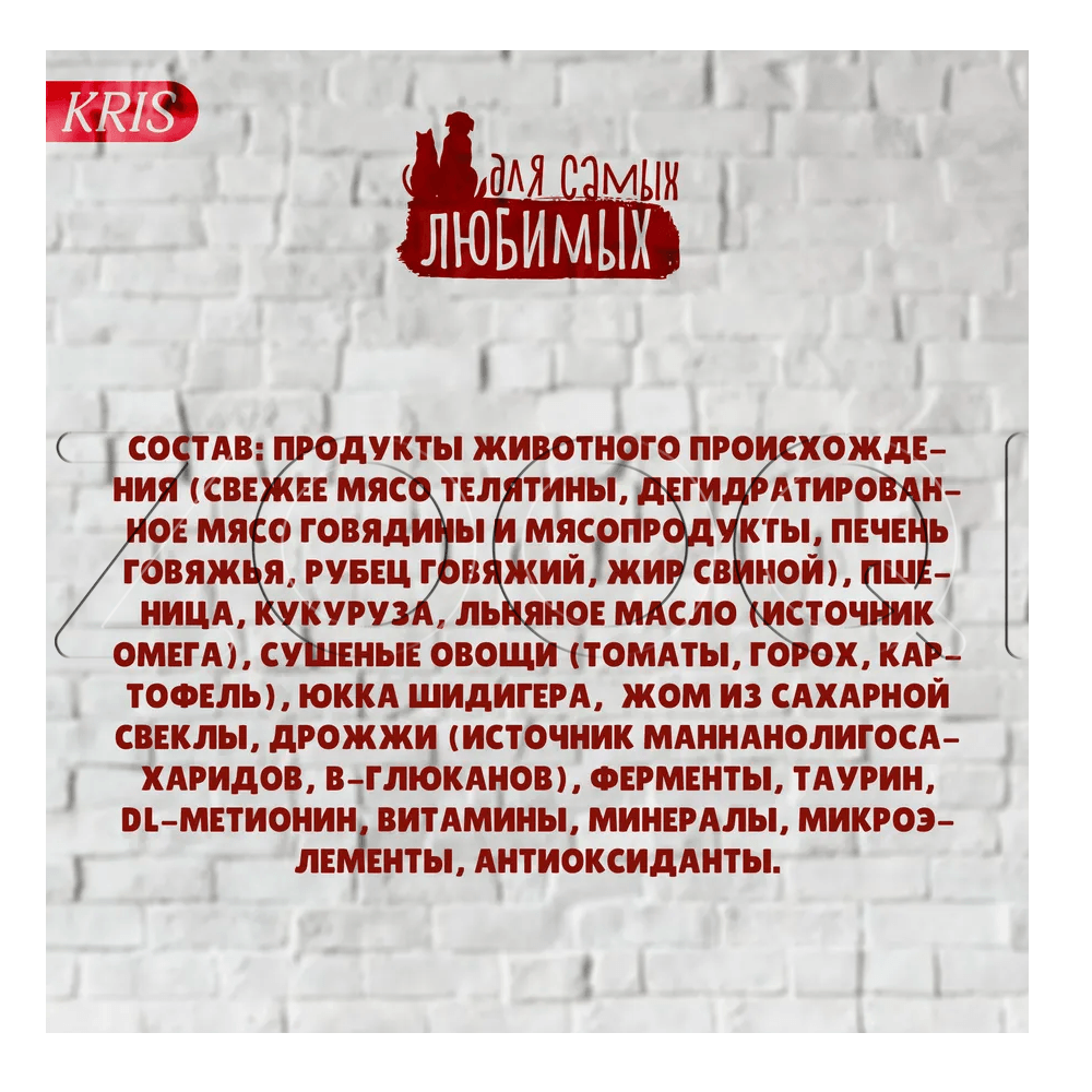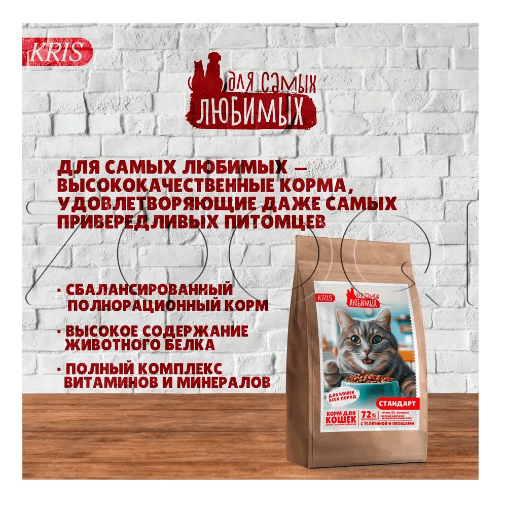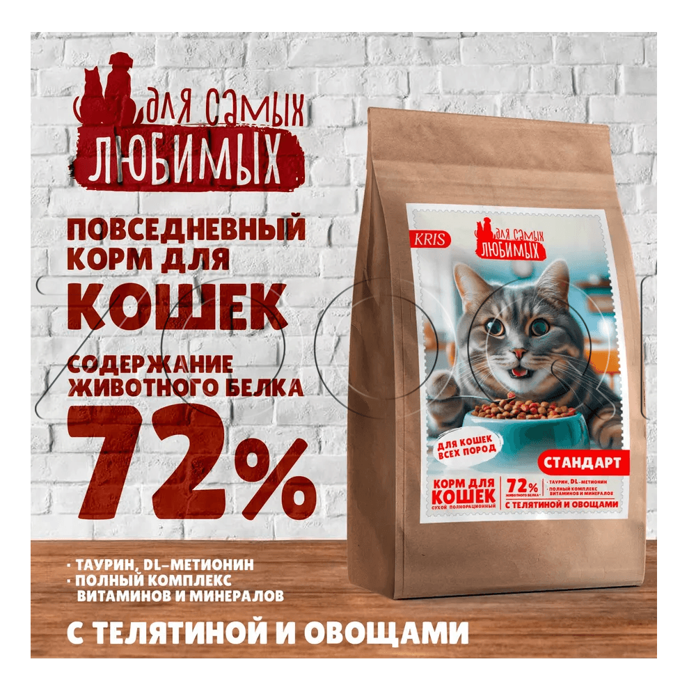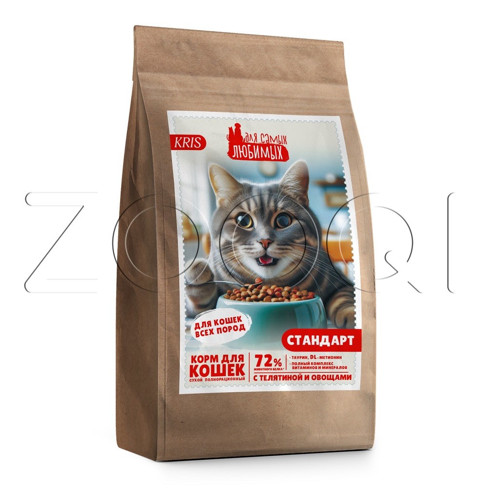 ДЛЯ САМЫХ ЛЮБИМЫХ Стандарт «С телятиной и овощами» для кошек – полнорационный сухой корм для взрослых кошек всех пород.
