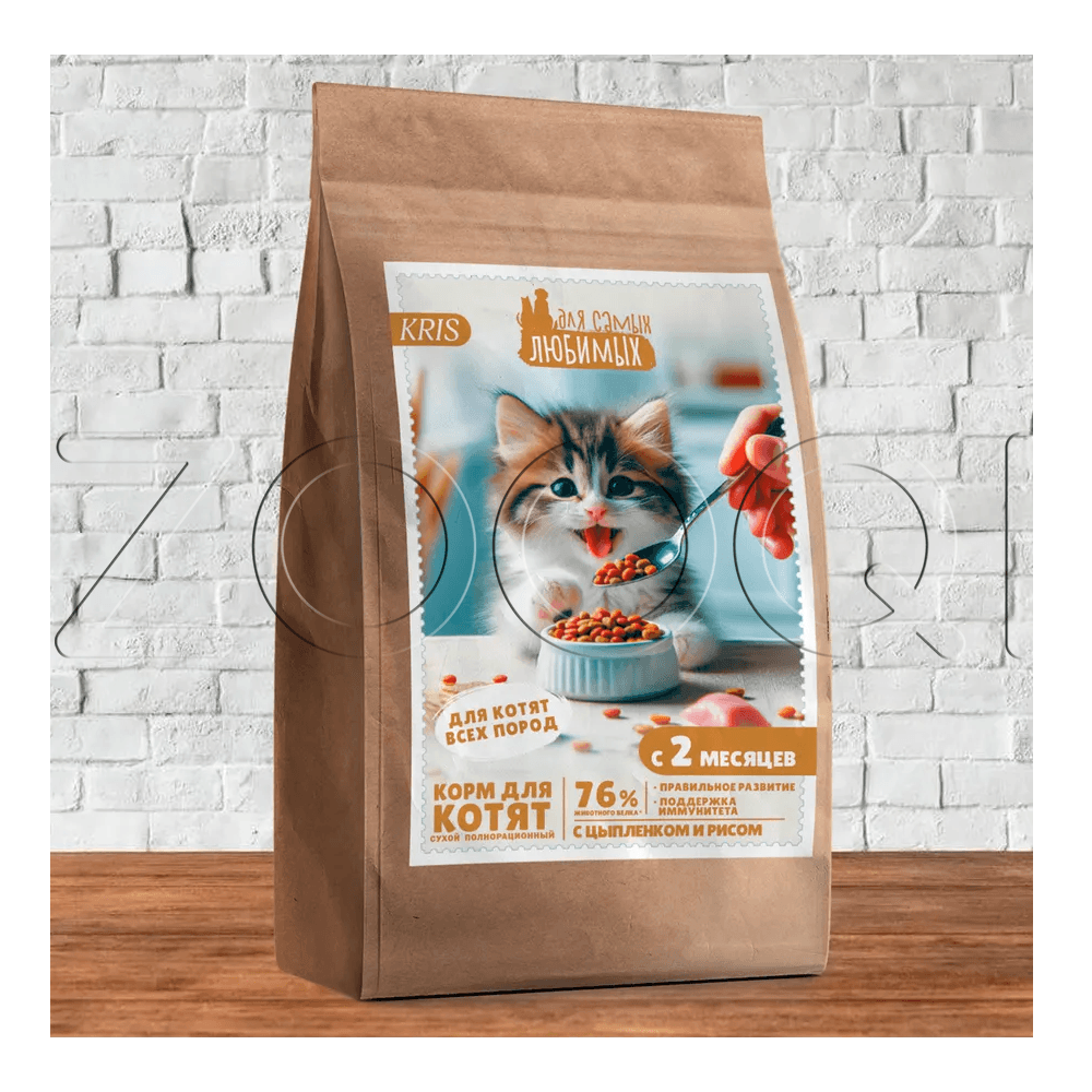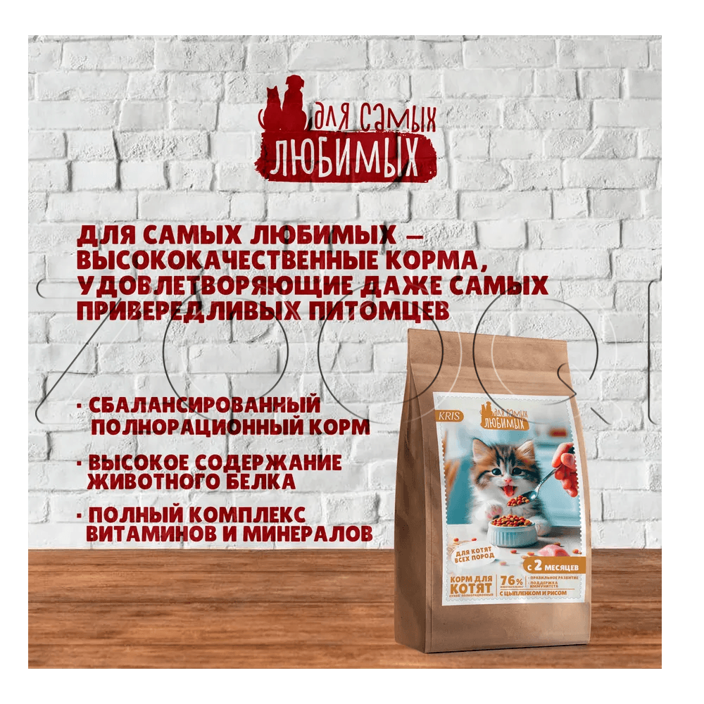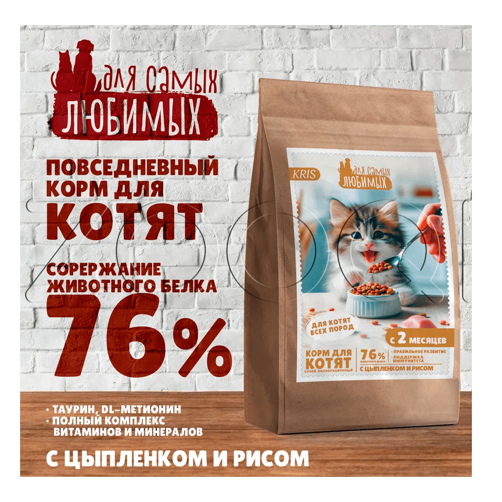 ДЛЯ САМЫХ ЛЮБИМЫХ Стандарт «С цыпленком и рисом» для котят – полнорационный сухой корм для котят всех пород с 2 месяцев.