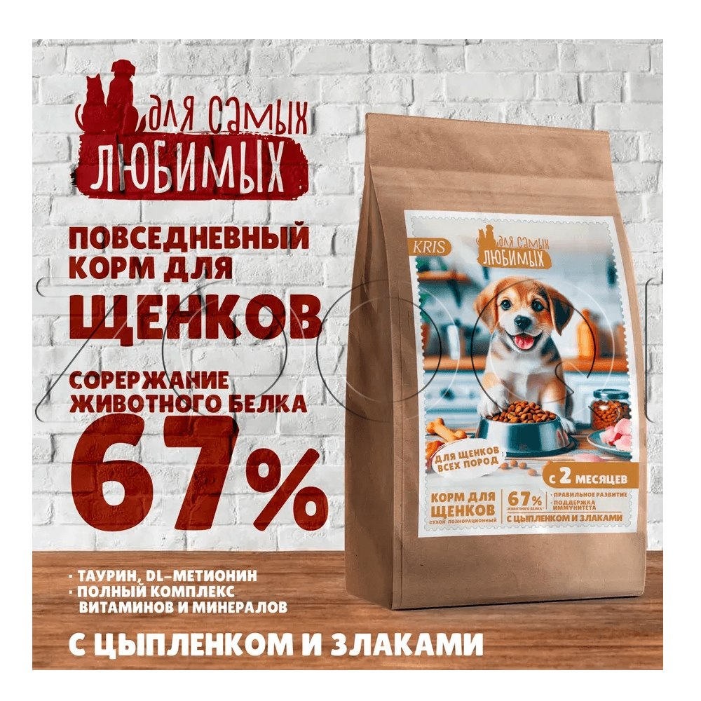 ДЛЯ САМЫХ ЛЮБИМЫХ Стандарт «С цыпленком и злаками» для щенков – полнорационный сухой корм для щенков всех пород с 2 месяцев.