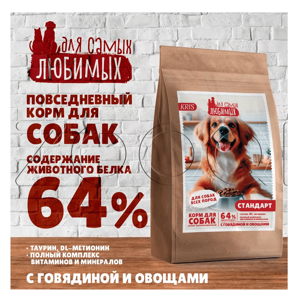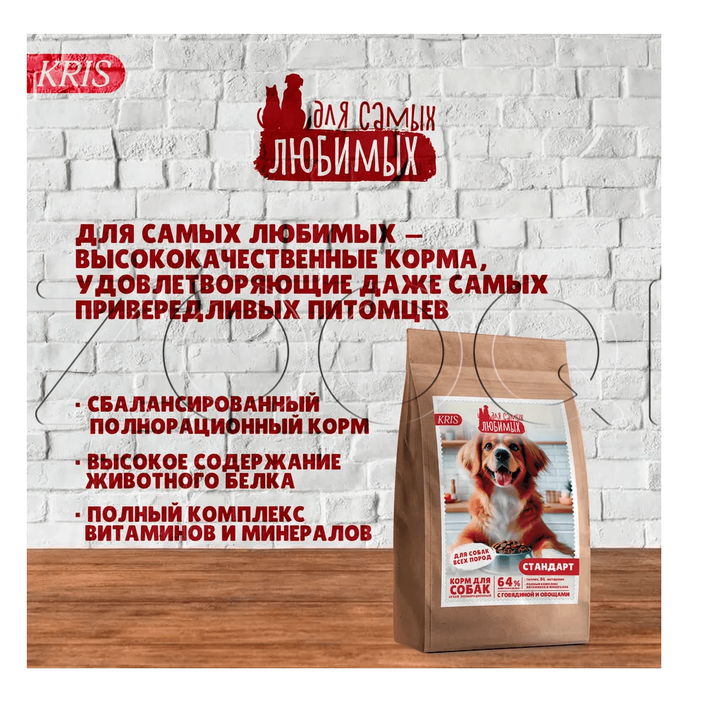 ДЛЯ САМЫХ ЛЮБИМЫХ Стандарт «С говядиной и овощами» для собак – полнорационный сухой корм для собак всех пород.