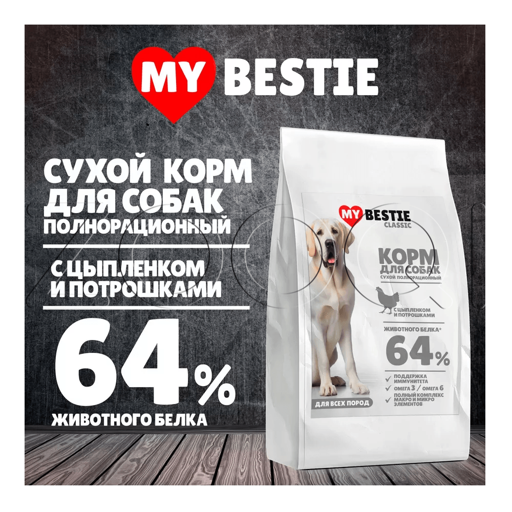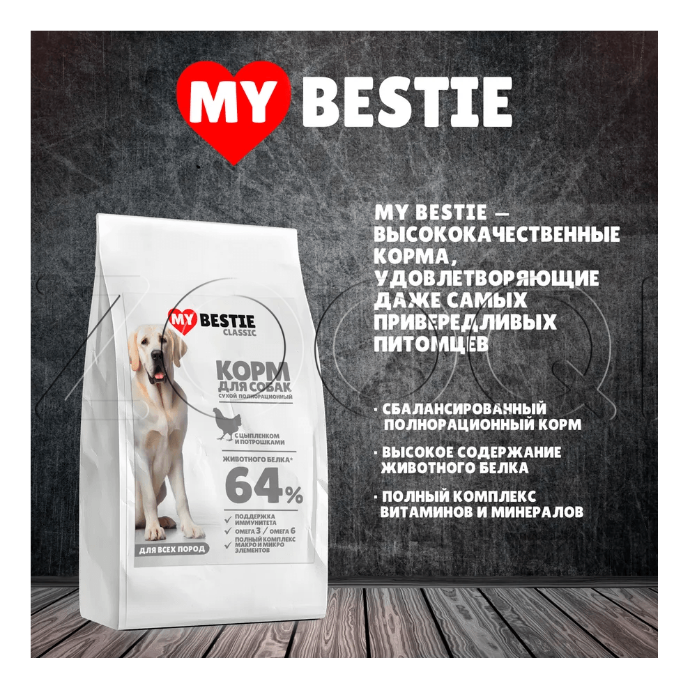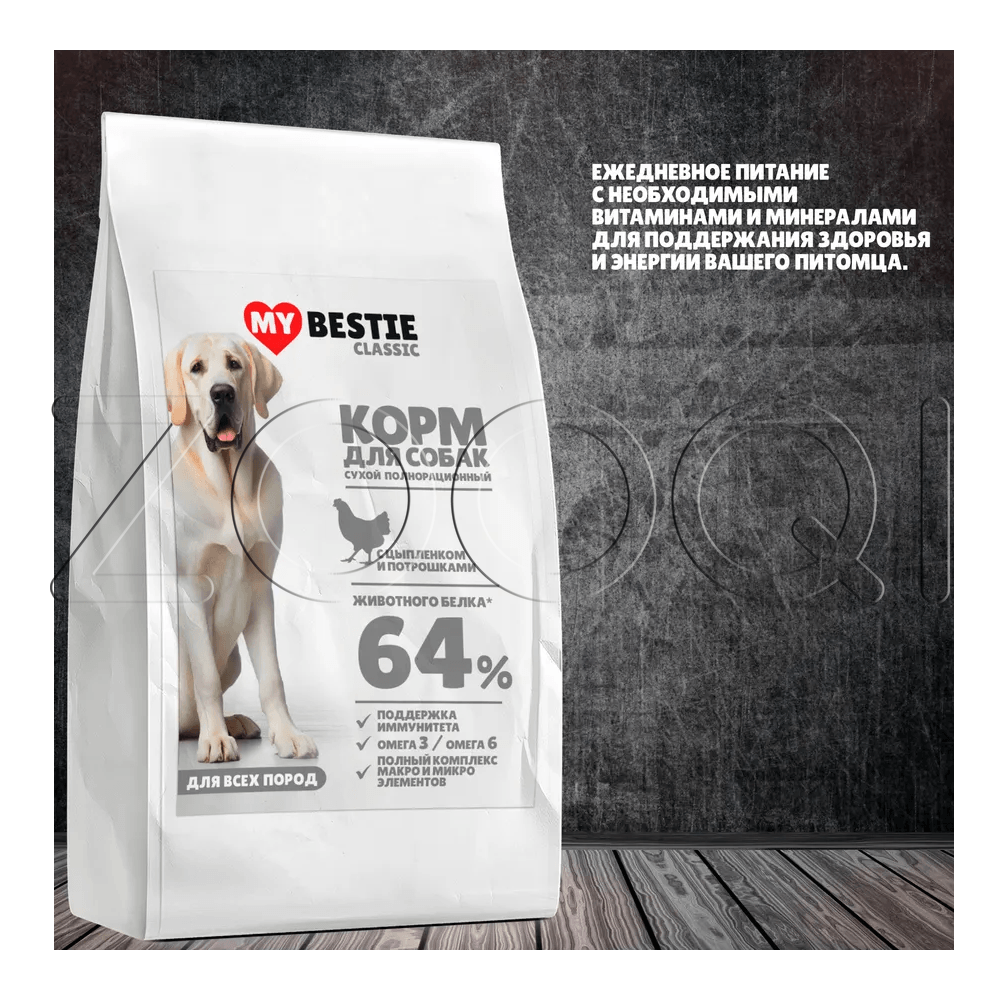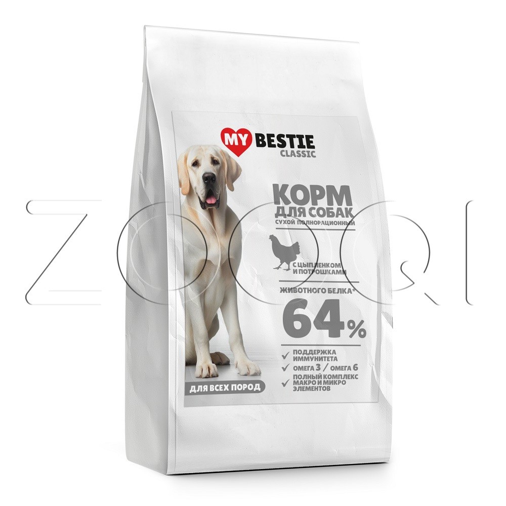 MуBestie Classic с цыпленком и потрошками – полнорационный сбалансированный сухой корм для собак всех пород.
